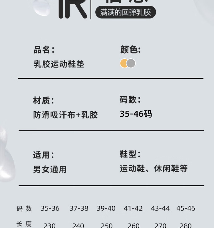 IQGD2 double pack insoles for men, latex soft elastic, women's shock-absorbing military training essential supplies 5016 2 pairs - white 37-38