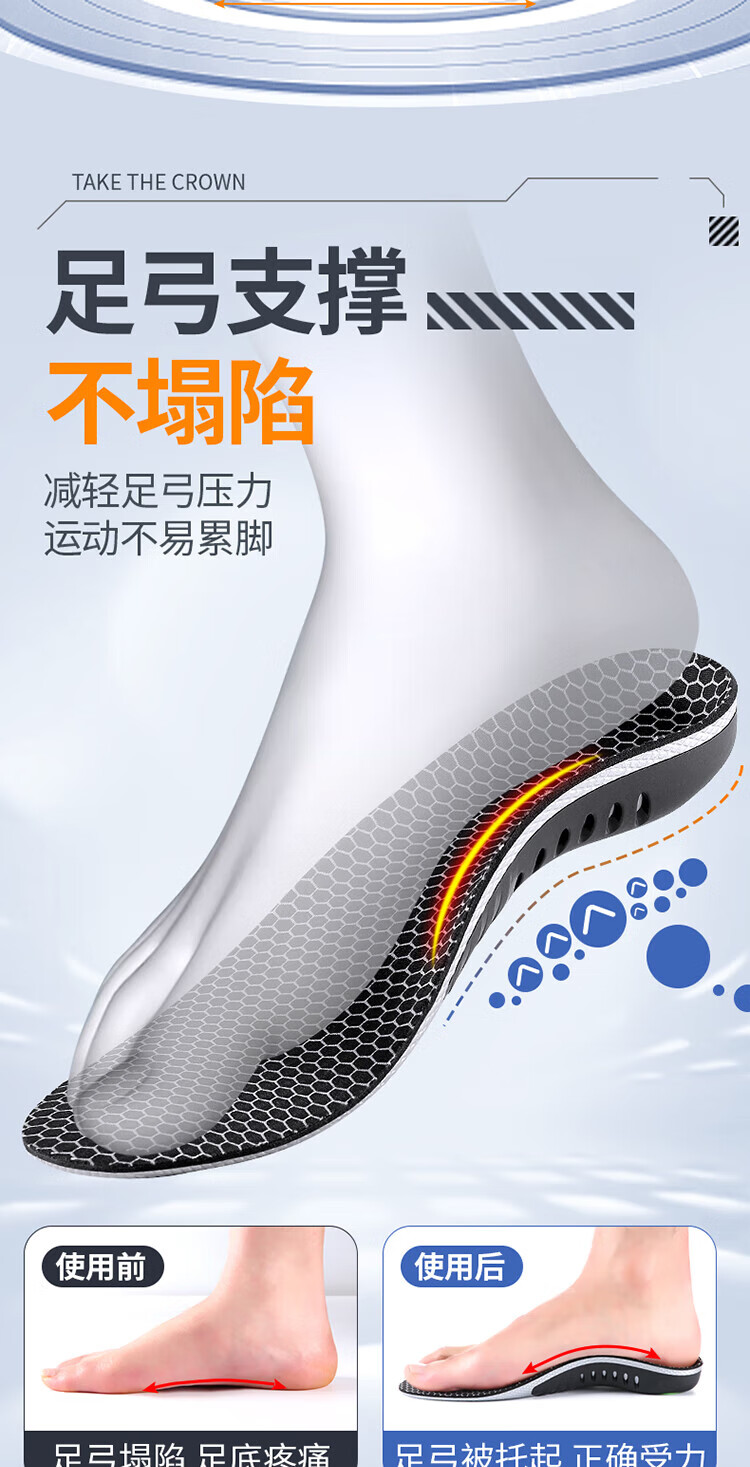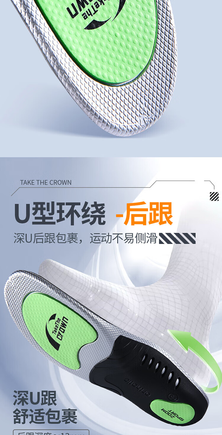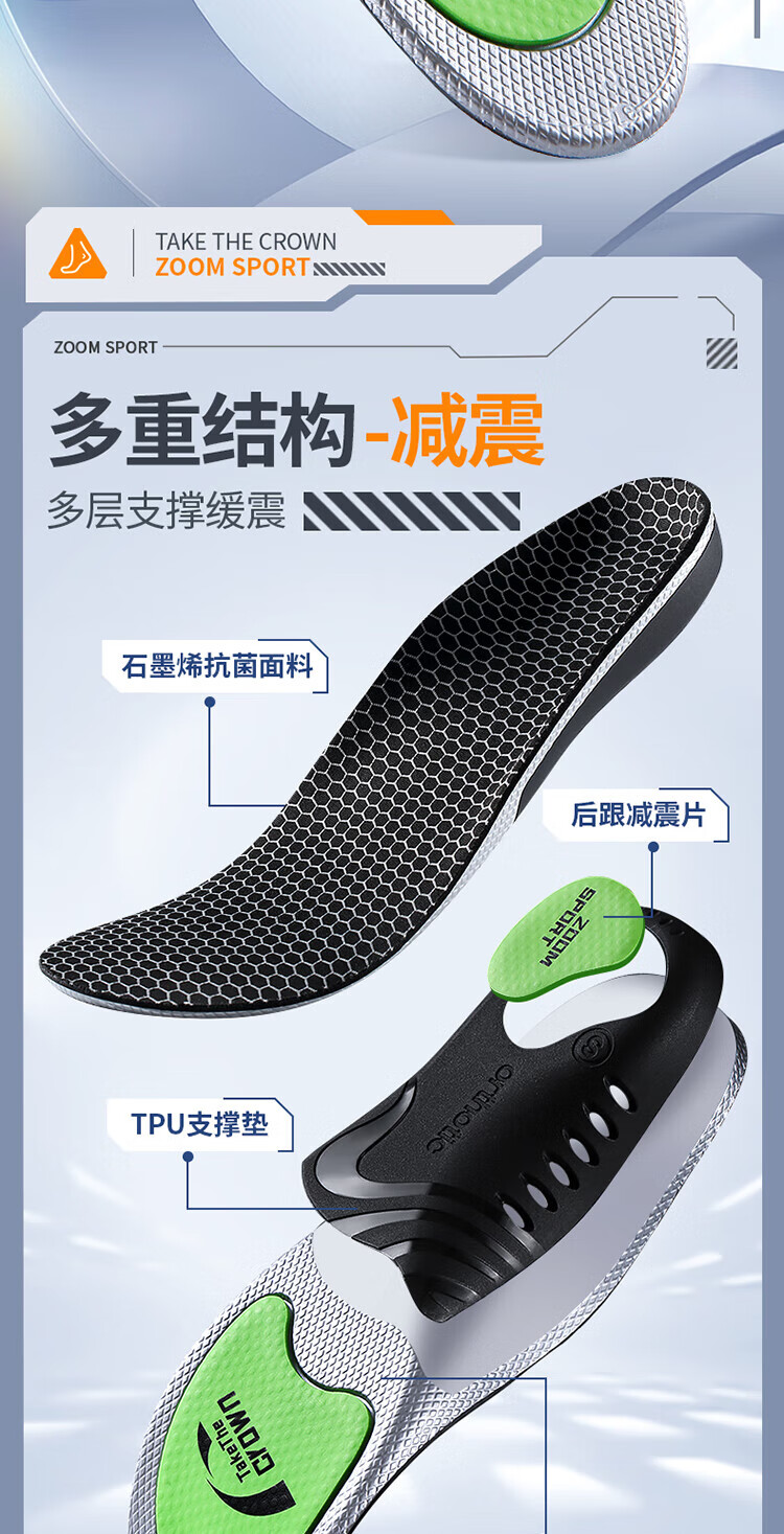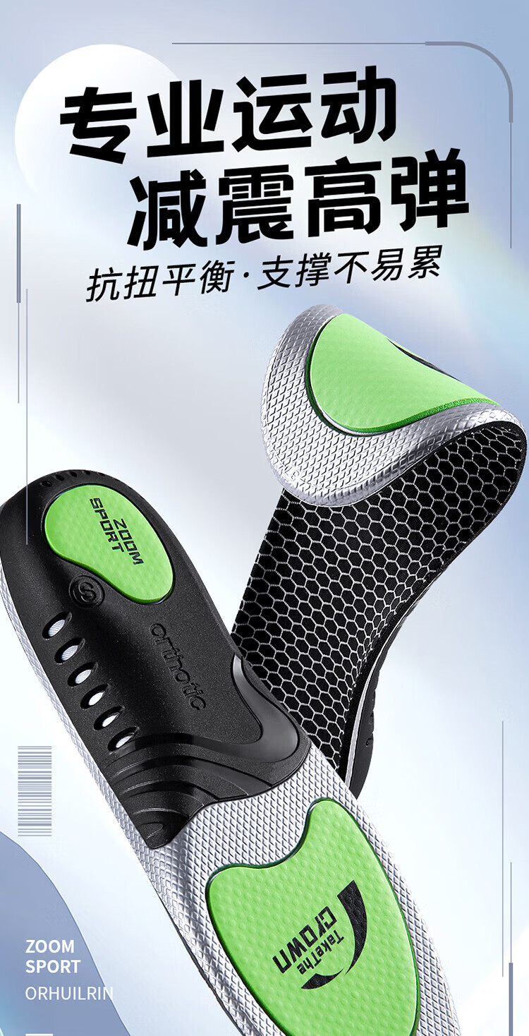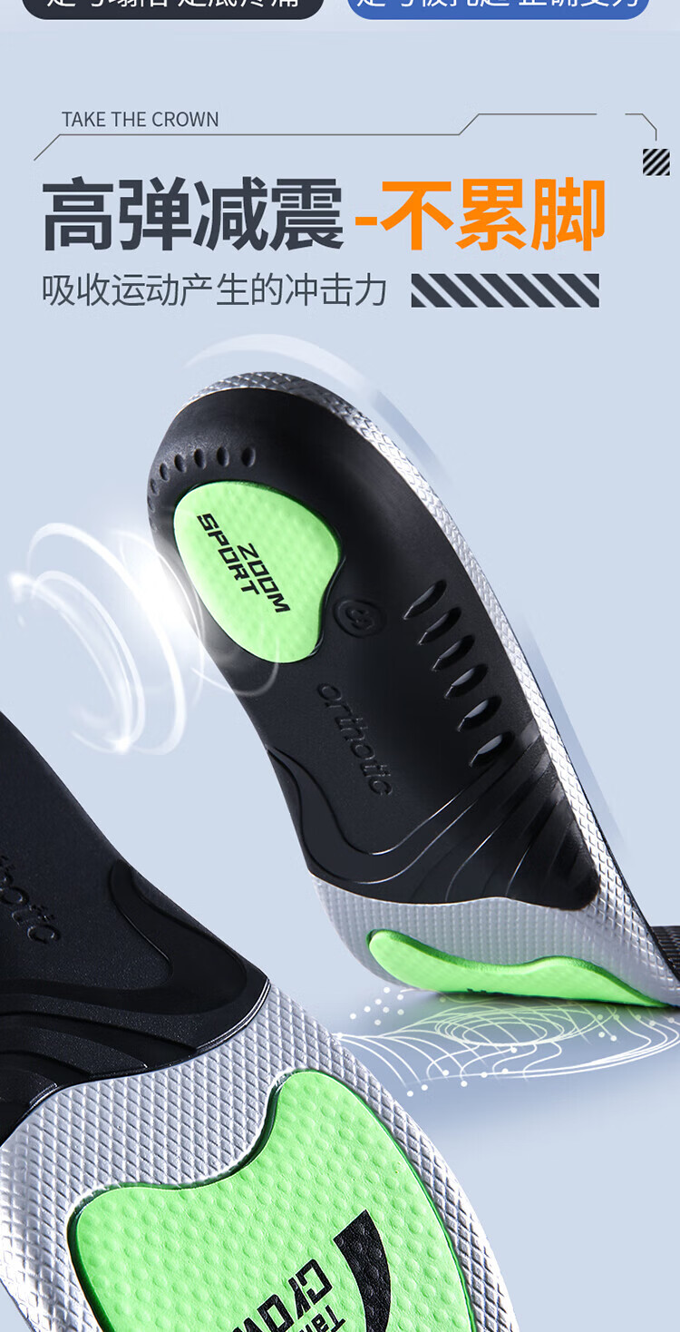 JVBV arch support insoles for men, soft elastic for long-lasting sports, high elastic shock absorption, green and black, size 4142
