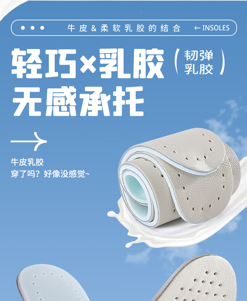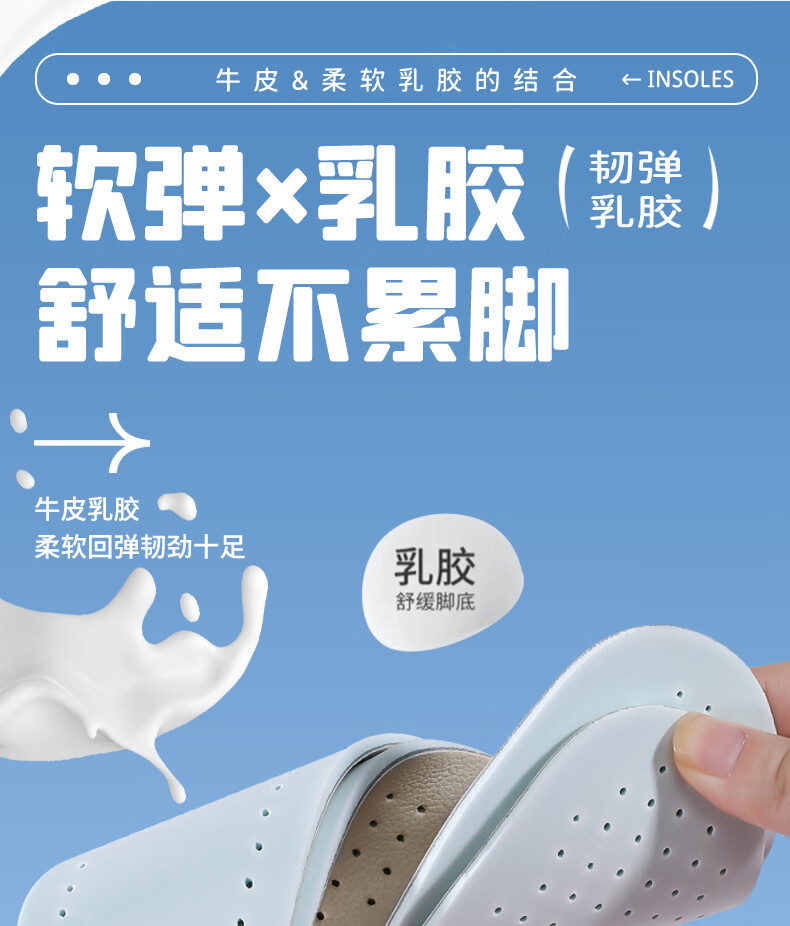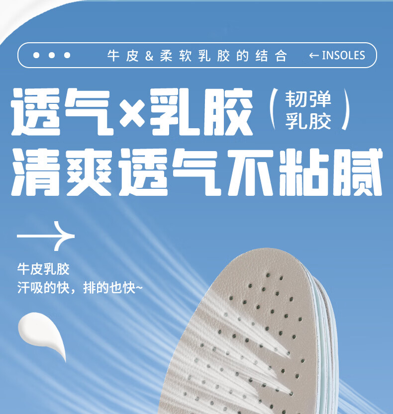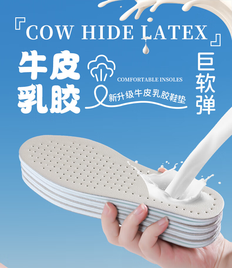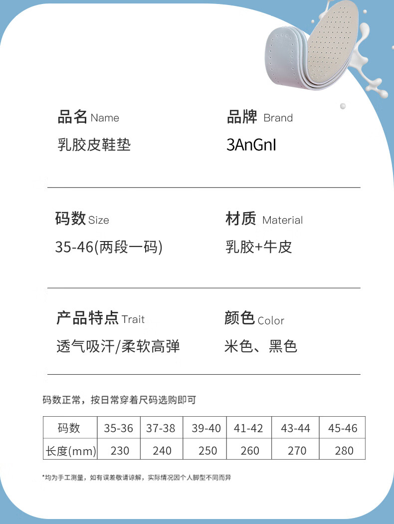 3AnGnI2 pair of latex cowhide insoles for men and women, lightweight, breathable, sweat-absorbent, deodorant, comfortable, soft and elastic, 37-38 size