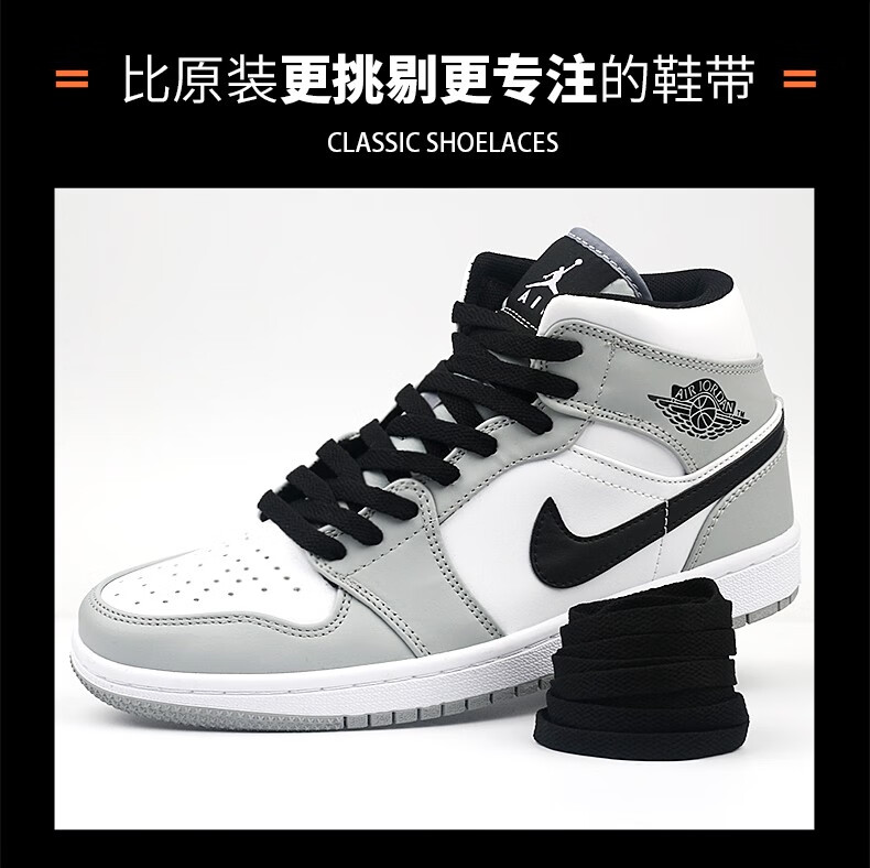 HKNS is suitable for Nike AJ 1 Low Mid High low-top high-top basketball shoes for men and women, broken North Carolina blue shoelaces, flat flat - black 150cm