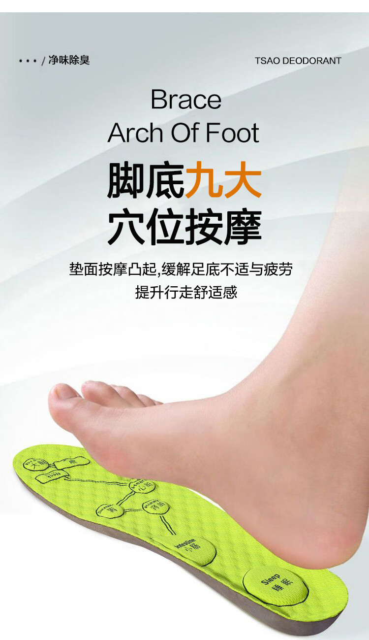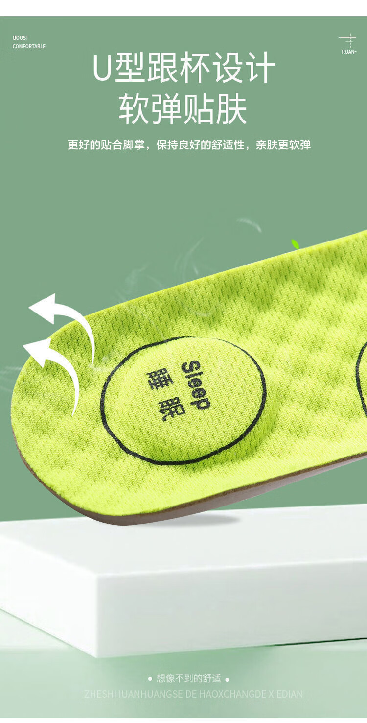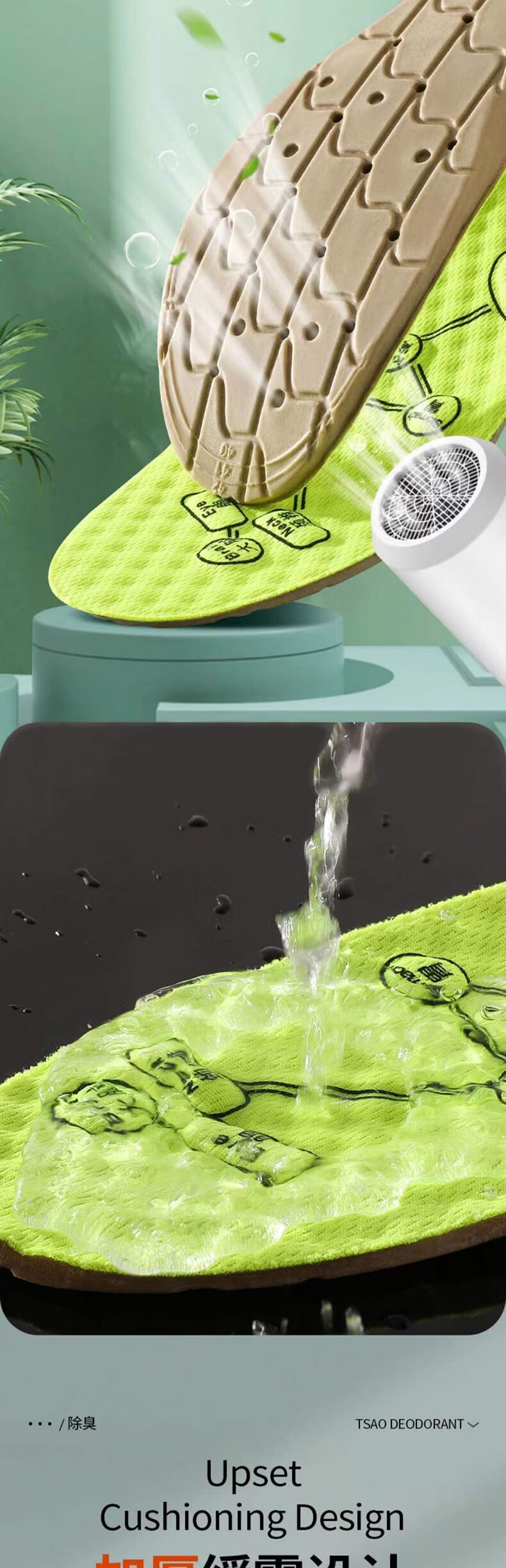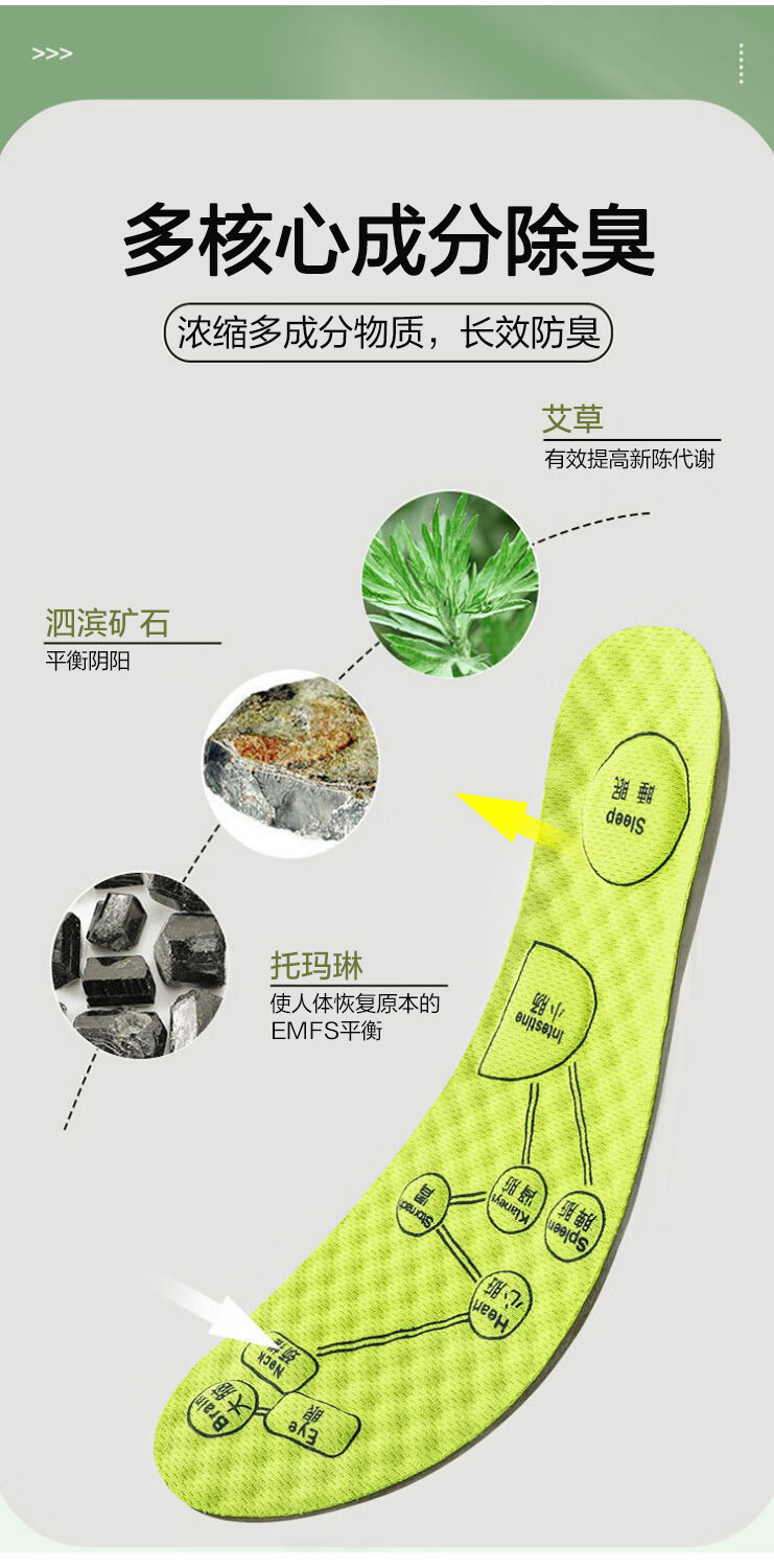 Mugwort anti-odor breathable insoles for men and women, high elasticity, shock absorption, anti-pain, massage, comfortable, soft, sweat-absorbent sports insoles, 2 pairs, soft-soled massage, sweat-absorbent and anti-odor/green, 43-44, can be cut