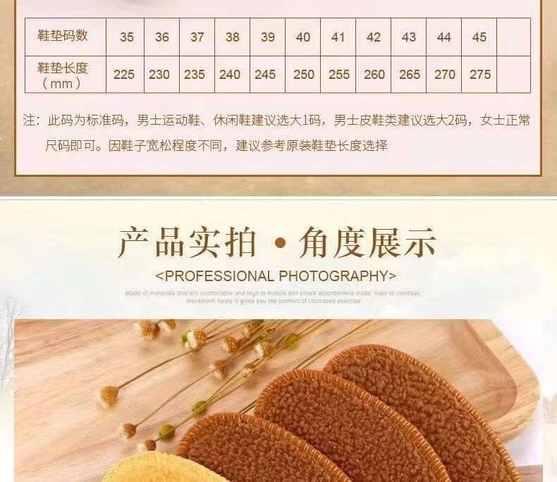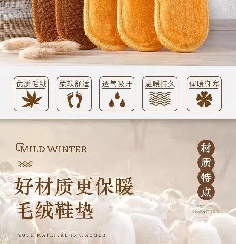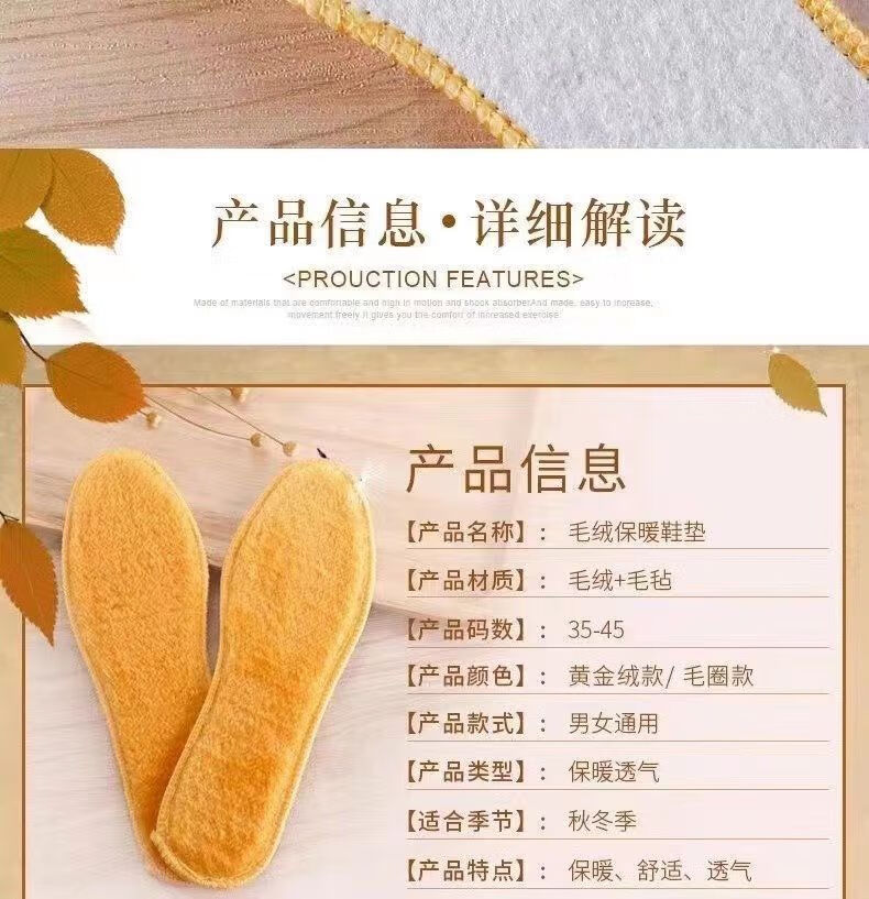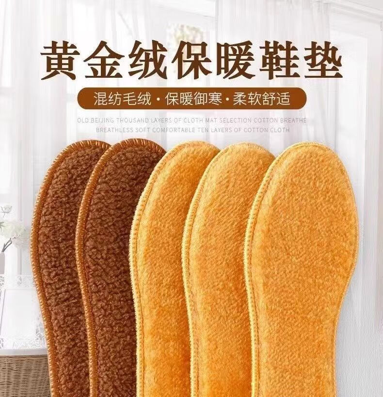 Gold velvet insoles for winter, plus velvet, deodorant, warm, sweat-absorbent and comfortable, sports insoles for women. Gold velvet thickened, warm and deodorant insoles, 1 pair, size 37