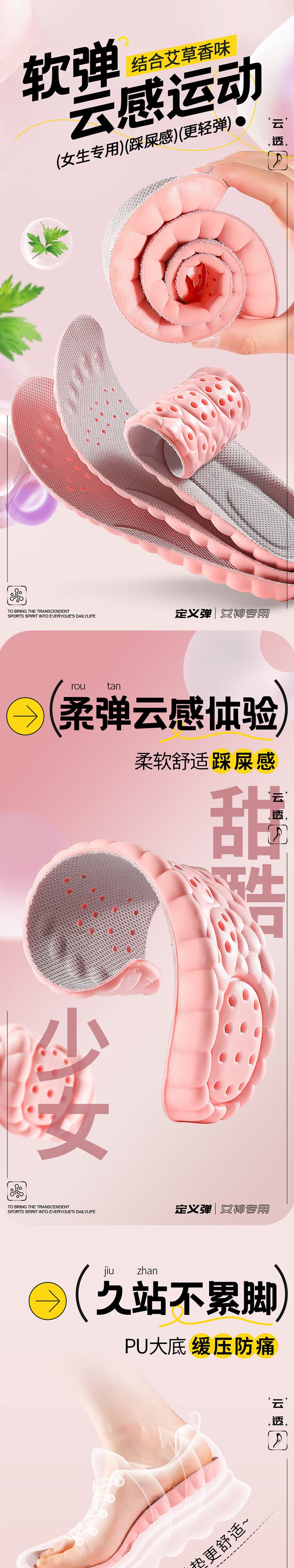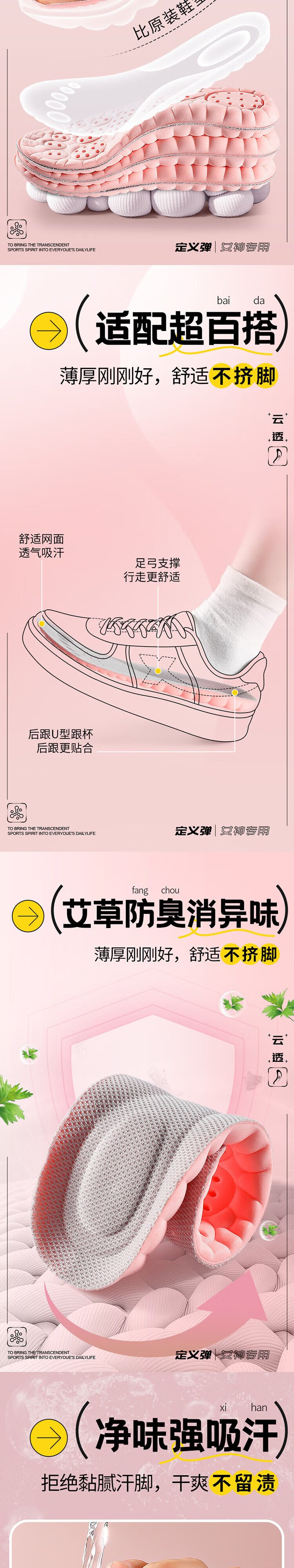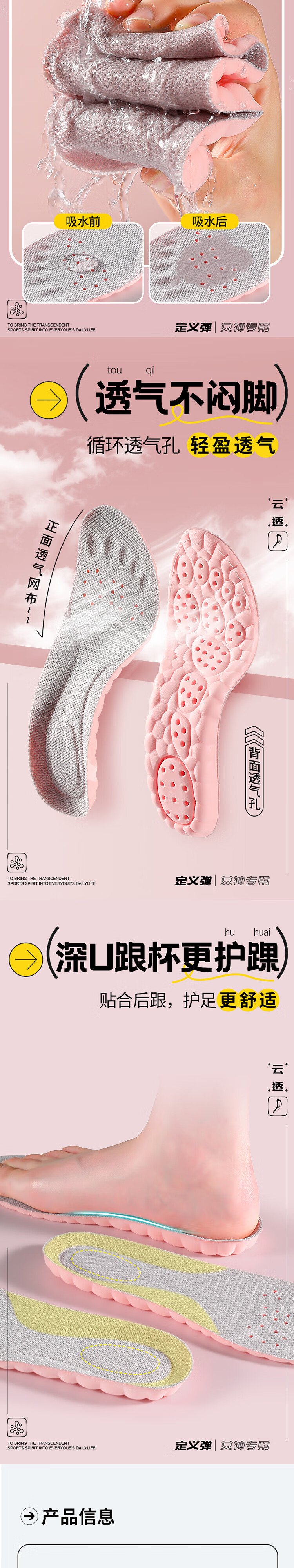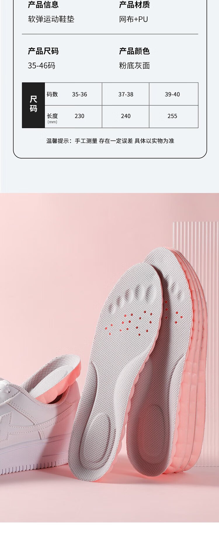 Foot print tribe women's special insoles, arch support, soft elastic, long-lasting sports, shock absorption, stepping on shit, anti-foot pain, sweat absorption and breathable, 1 pair - pink and gray, arch support - anti-foot pain, size 3738