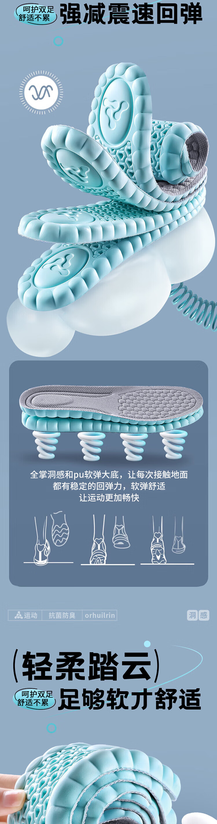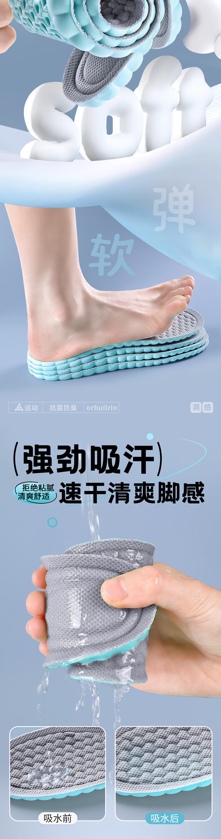 Queer sports insoles for men, anti-odor, sweat-absorbent, breathable, anti-bacterial, non-suffocating, soft and elastic for feet, shock-absorbing, feeling like stepping on shit, not tired after standing for a long time, prevent foot pain, 2 pairs, blue and gray - sports shock-absorbing, sweat-absorbing and anti-odor, size 41, can be cut