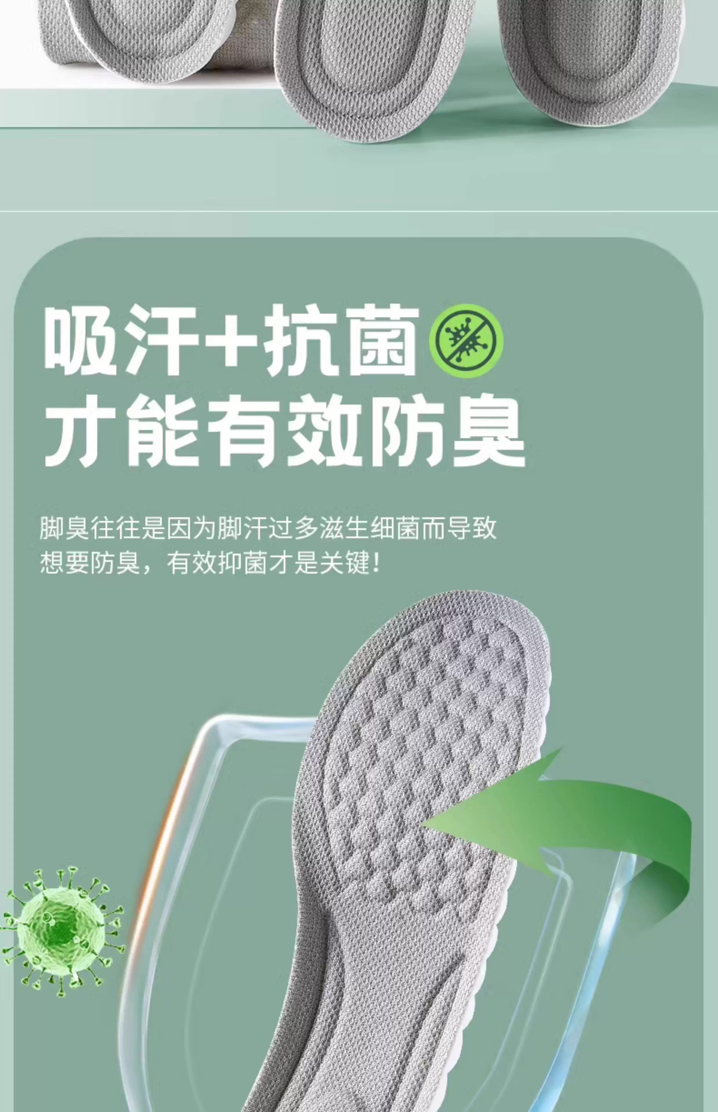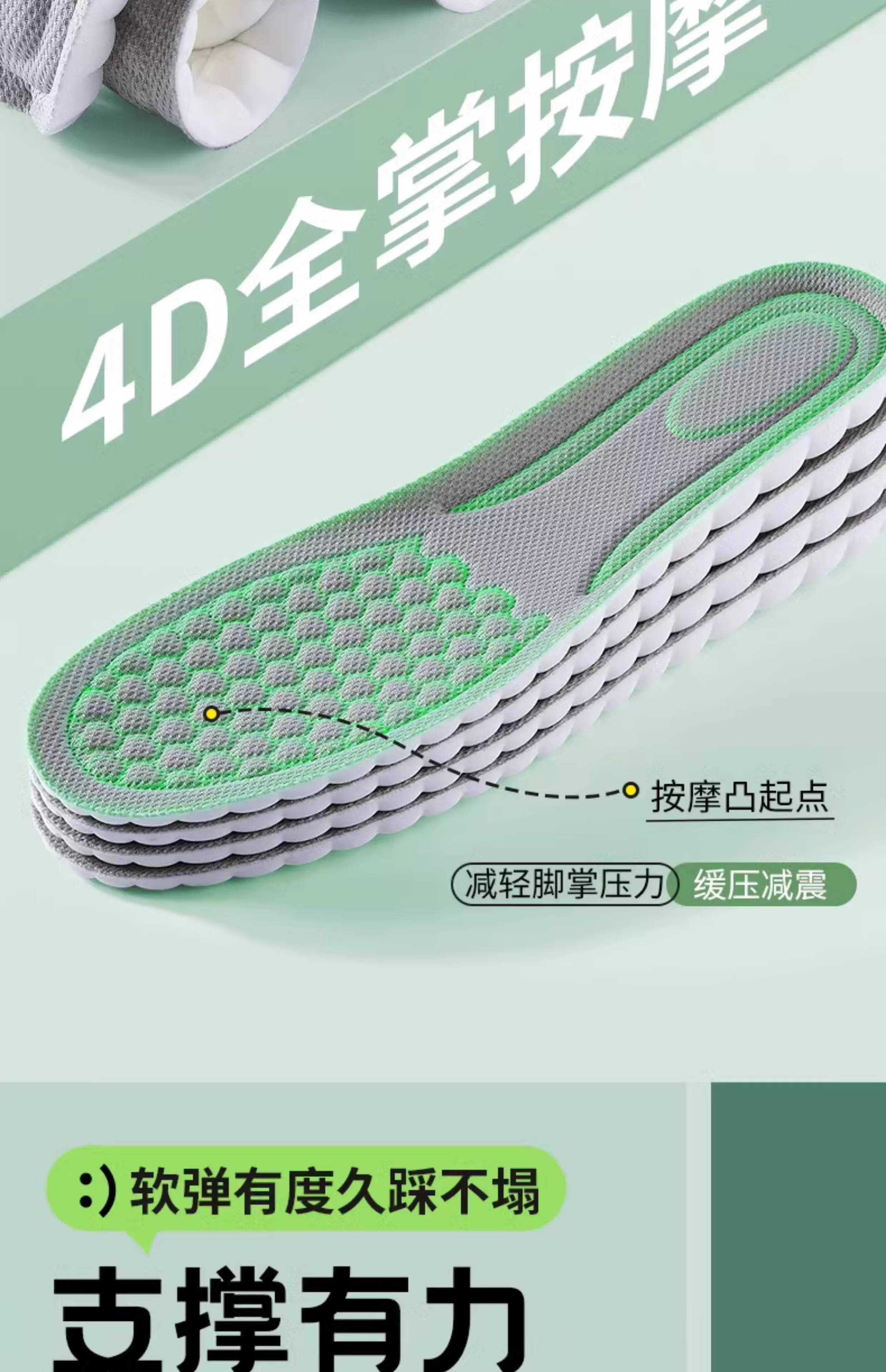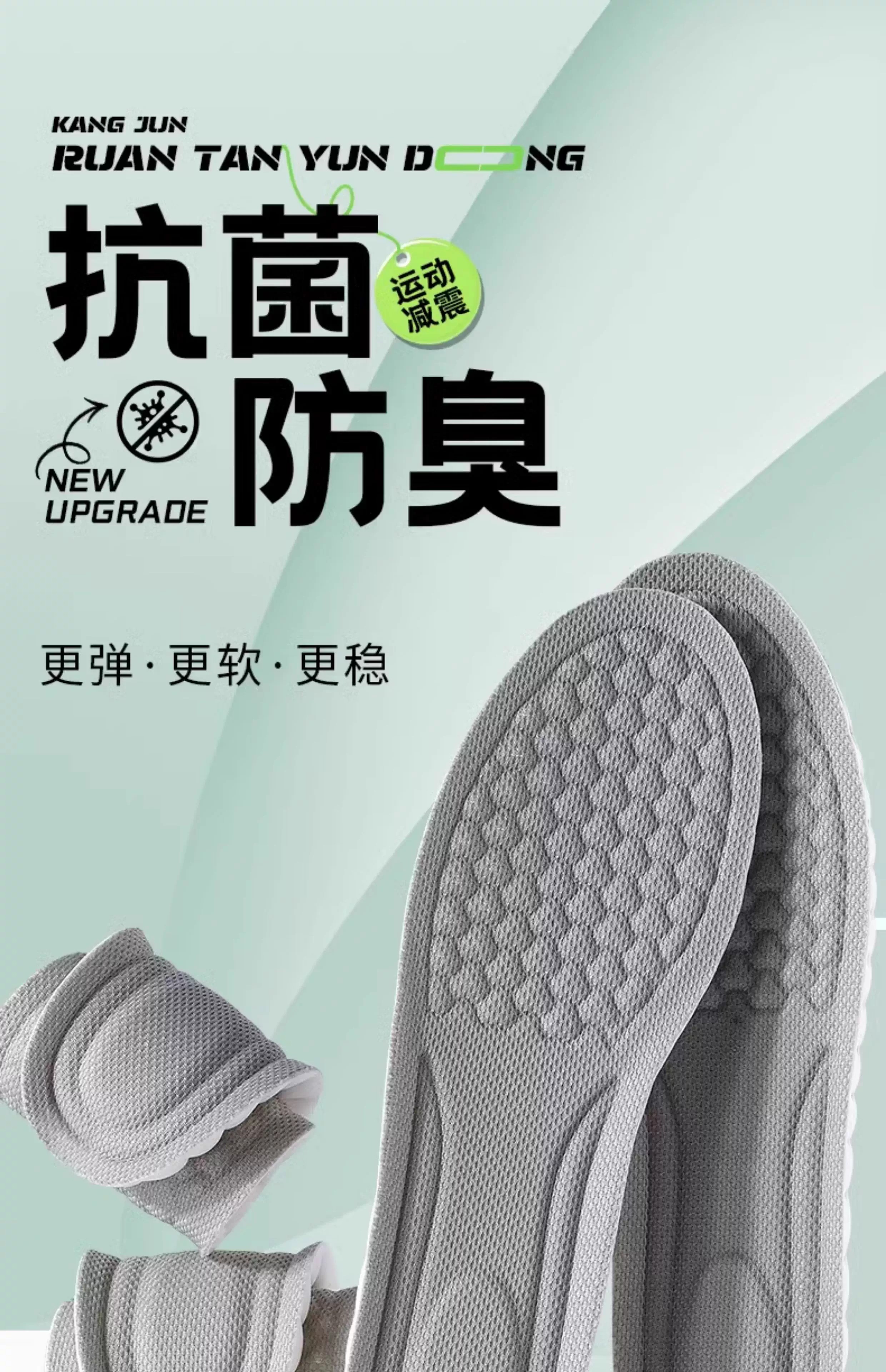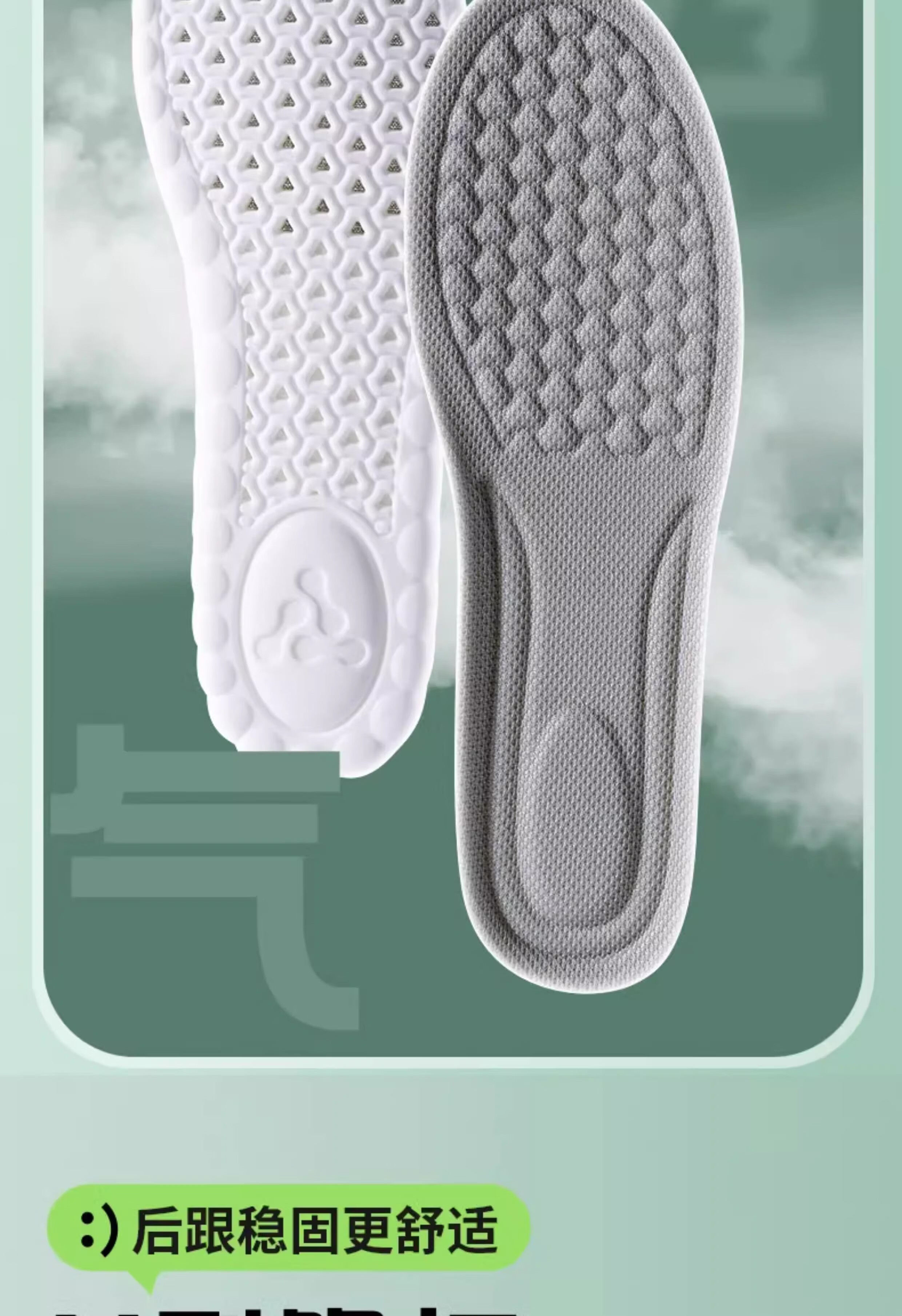 Sports insoles for men, shock-absorbing, sweat-absorbing, breathable, antibacterial and deodorant, women's thickened, soft and elastic, so you won't be tired for a long time, running, basketball, winter, blue and gray, 1 pair, 41-42, can be cut