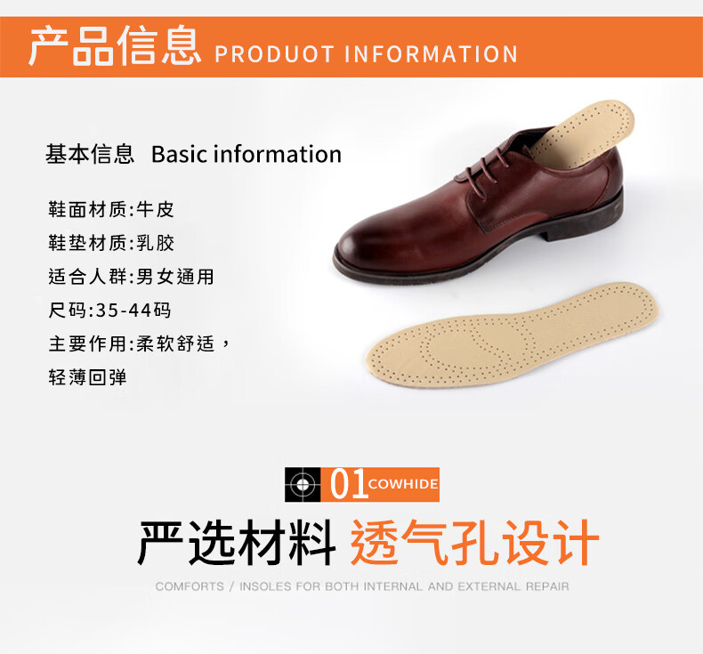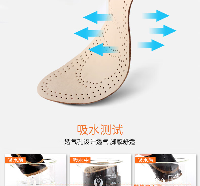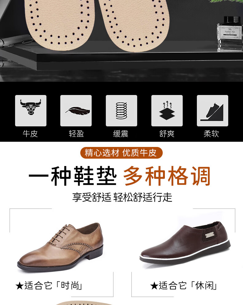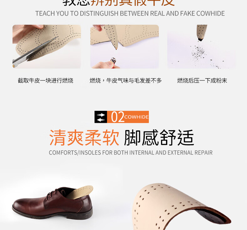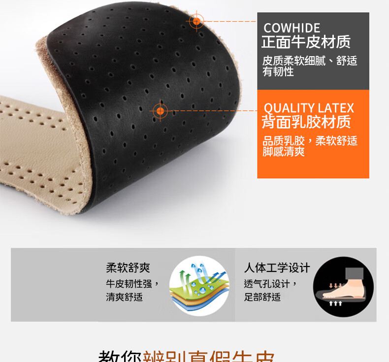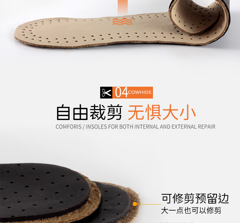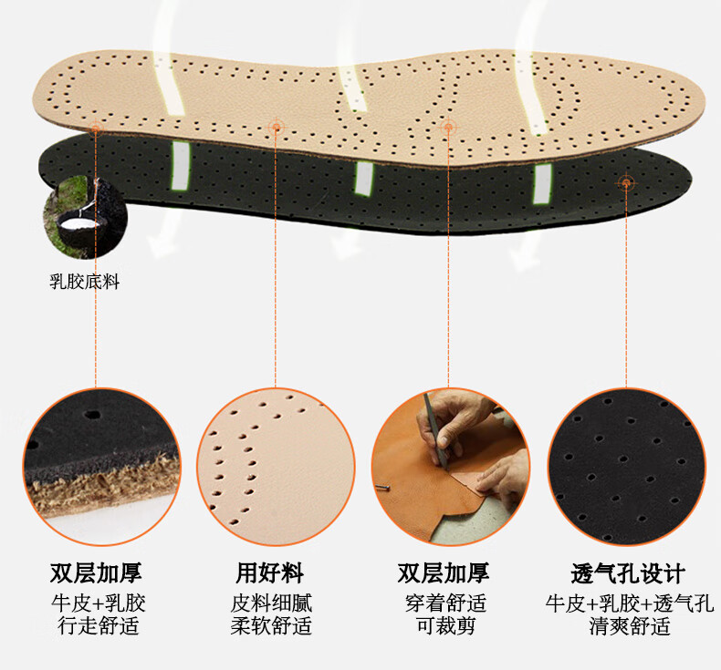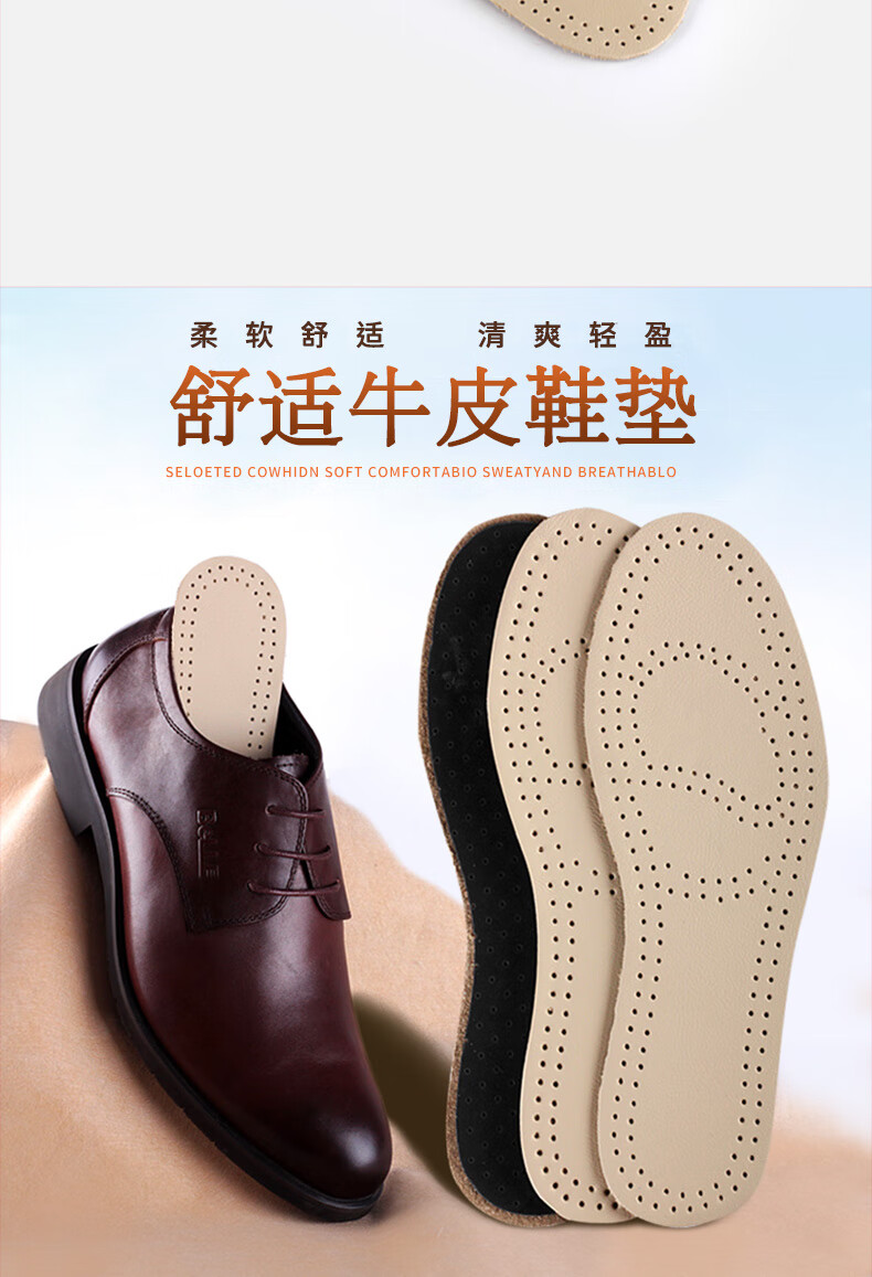 Huabaochi 2 pairs of leather shoes insoles, first layer of cowhide for men, breathable, sweat-absorbent, genuine leather, deodorant, small white shoes, sneakers, leather insoles, summer thin, off-white, 2 pairs, 43-44 yards (can be cut)