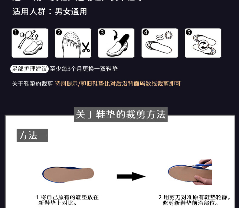Huabaochi 2 pairs of sports insoles for men, breathable, sweat-absorbent, shock-absorbing, soft, women's running soft elastic cushioning, white shoe leather shoe insoles, black, 2 pairs, size 43-44 (can be cut)