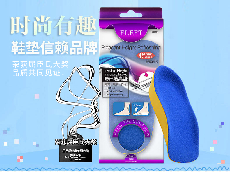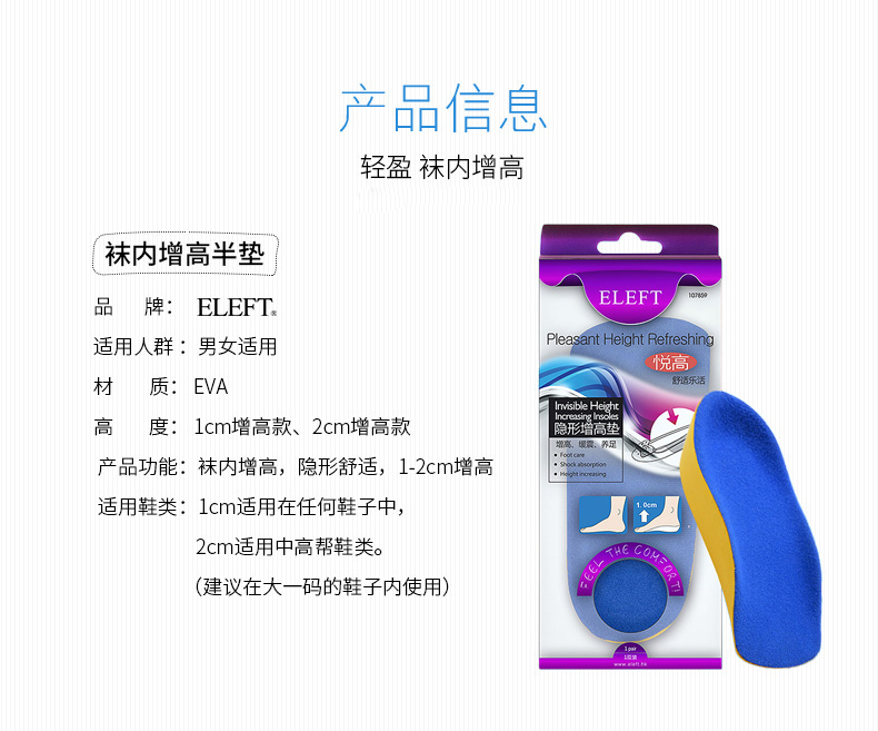 Eleft Watson's award-winning brand invisible heightening insoles and half-heightening insoles in socks