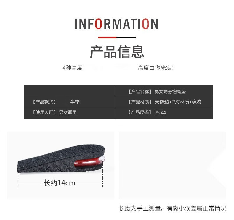 Jinmailong invisible inner heightening insole for men and women heightening insole half cushion air cushion shock absorption interview trust half cushion black 1 pair