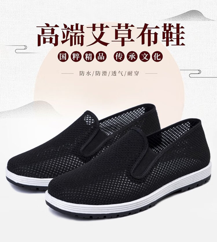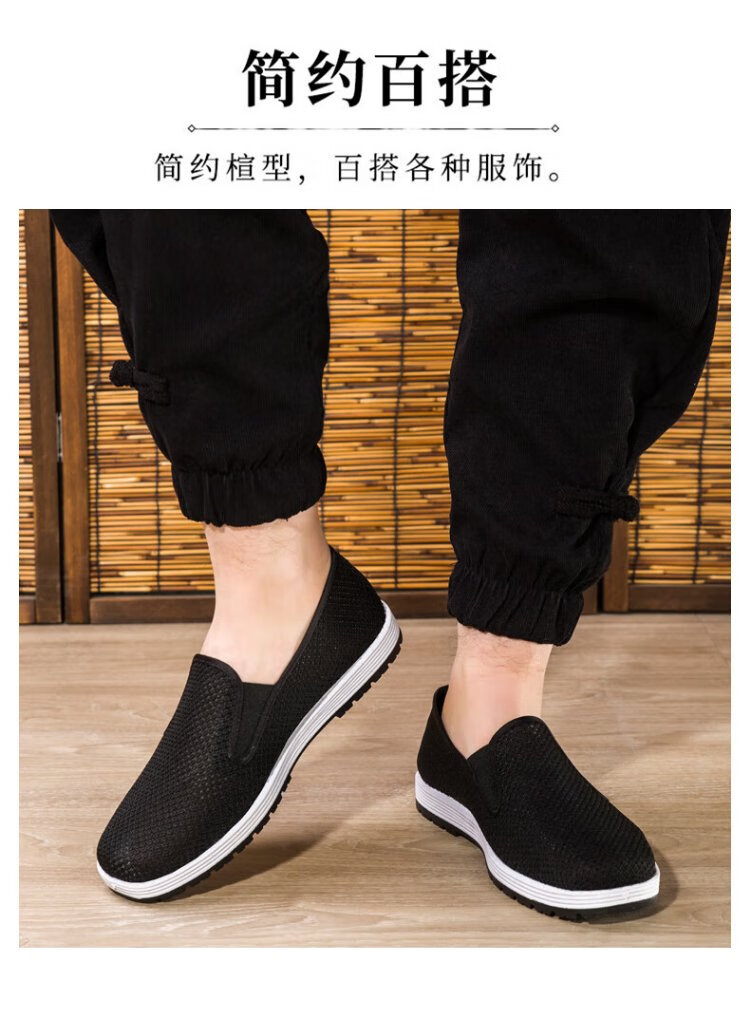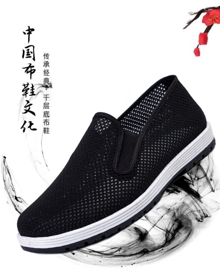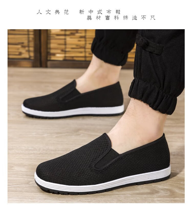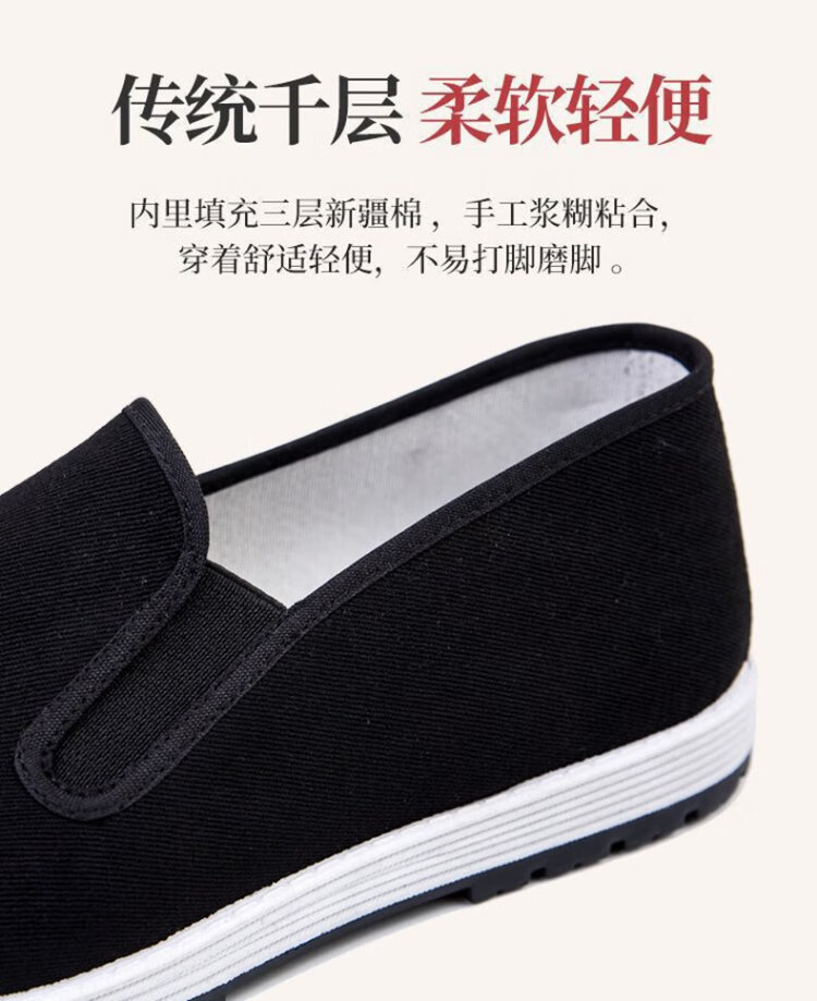 IQGD Traditional Cloth Shoes Men's Old Beijing Cloth Shoes Casual Low-top Thousand-Sole Slip-On Old Man Shoes 052 Black Size 43
