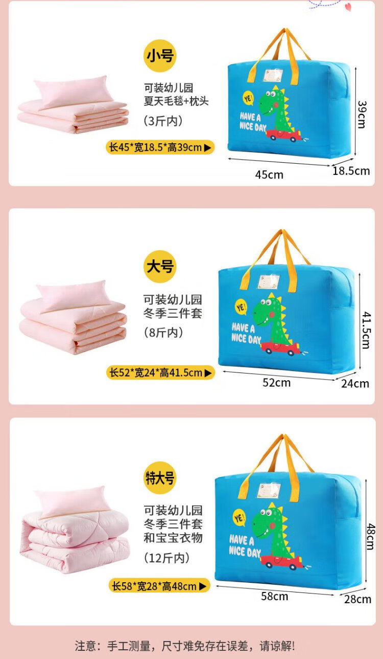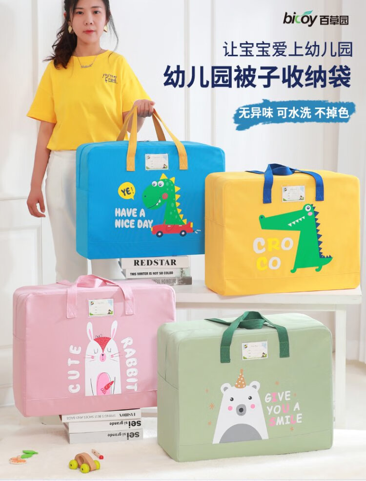 Baicaoyuan Kindergarten Quilt Storage Bag Thickened Oxford Cloth Student Wear Cotton Mattress Bag Children's Portable Luggage Packing Clothes