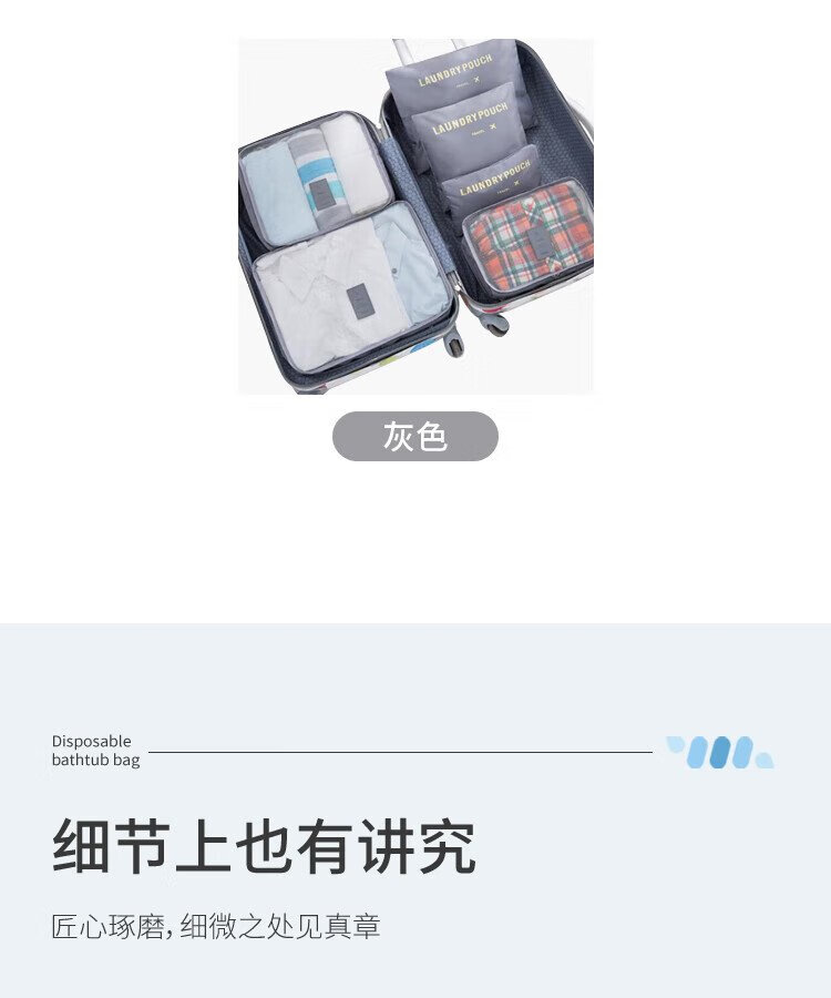 Xinqin Washing Storage Set Washing Storage Bag Suitcase Clothing Organizing Bag Storage Bag 6-piece Set Gray
