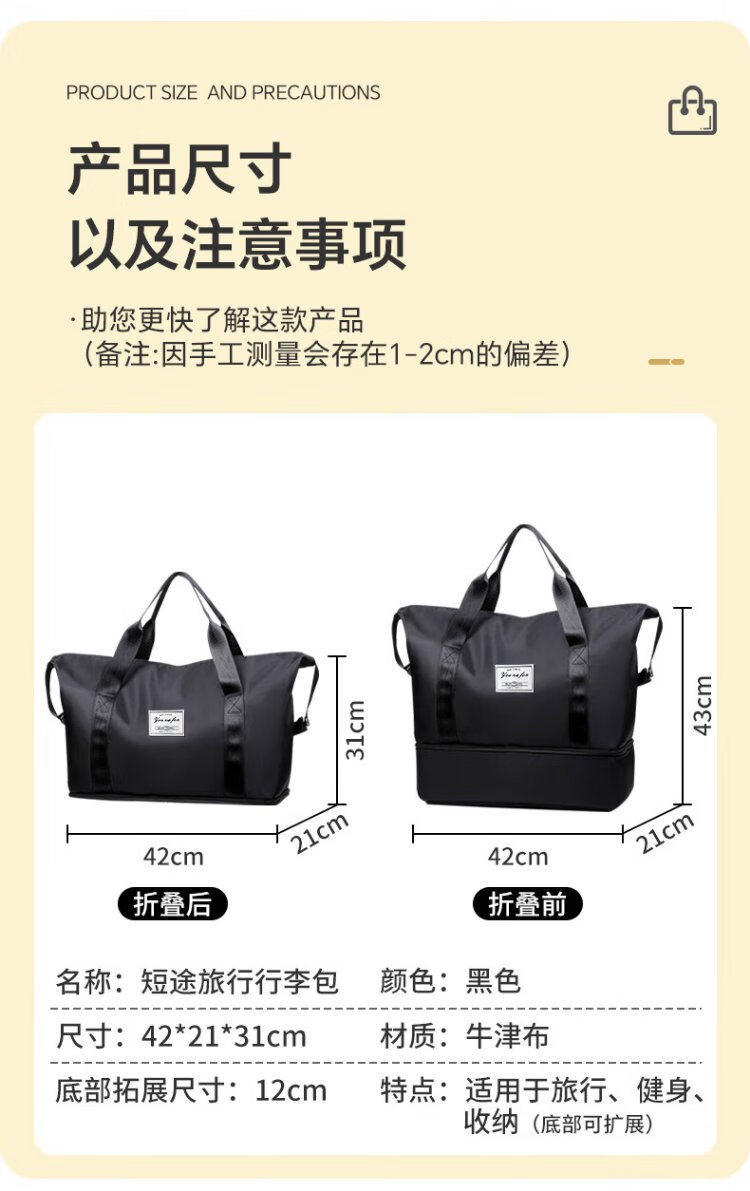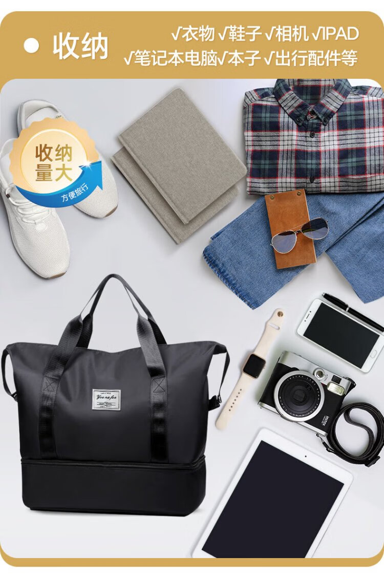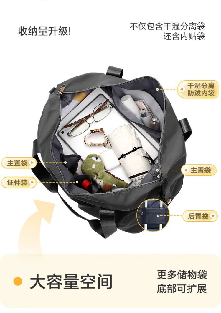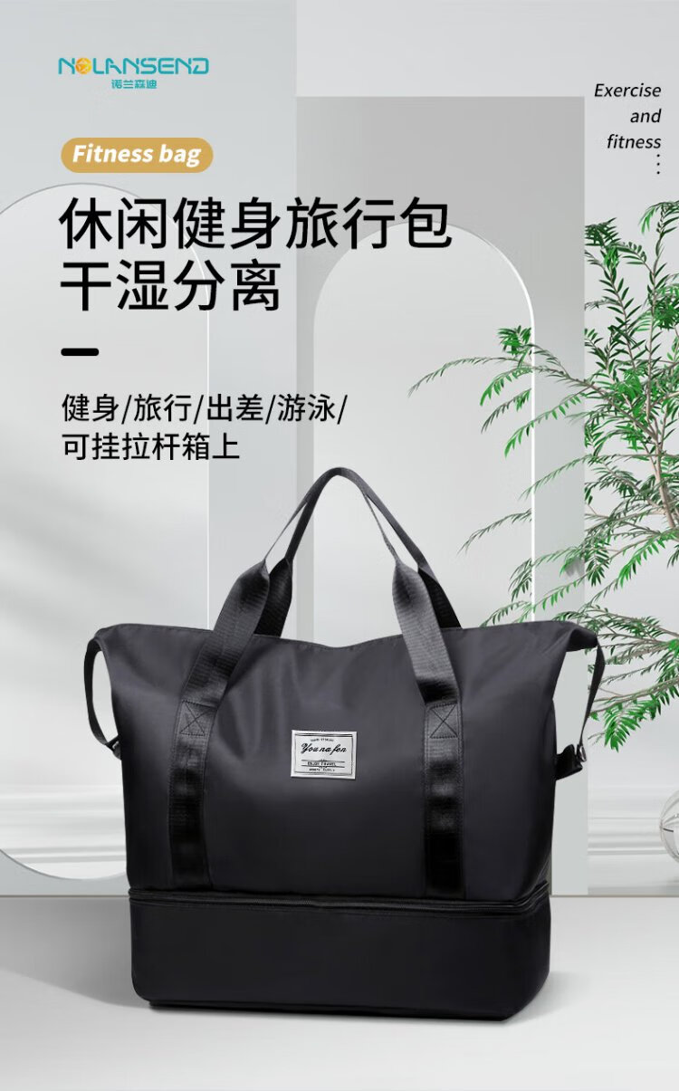 Nolan Sendi Travel Bag Men's and women's portable large-capacity sports fitness bag short-distance travel luggage storage bag 515 black