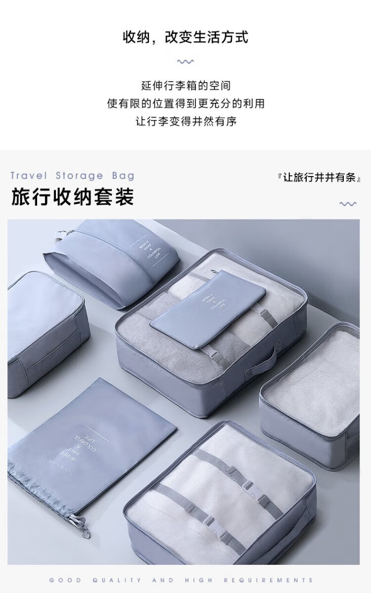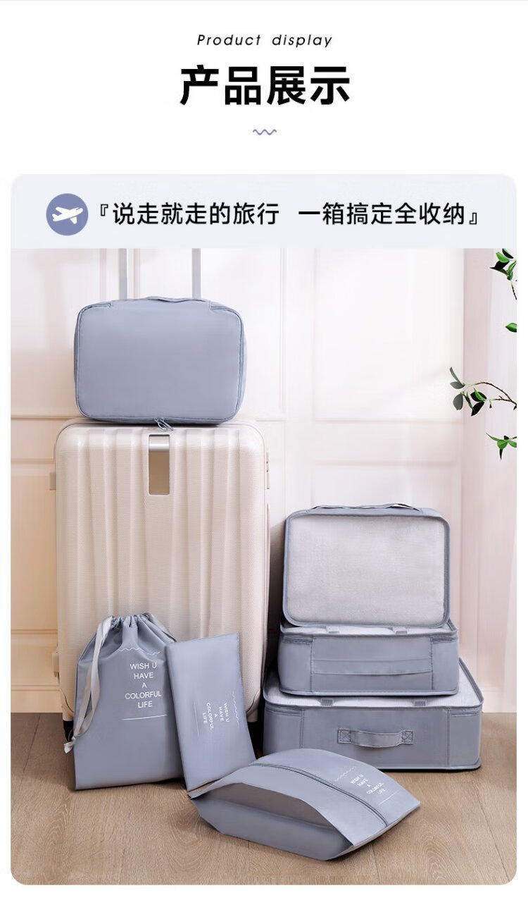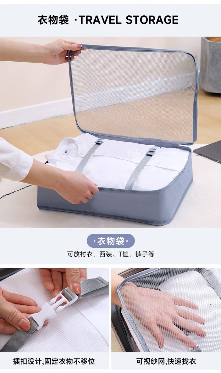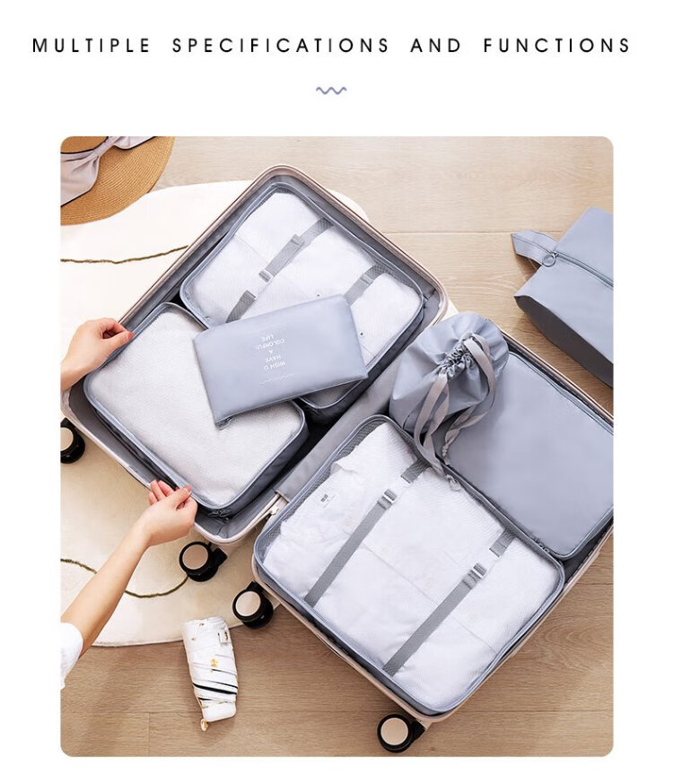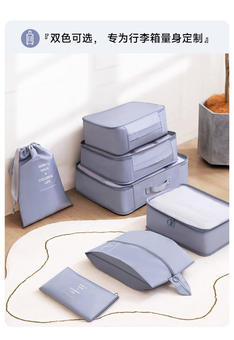 Baicaoyuan Travel Storage Bag Suitcase Storage Bag Clothes Distribution Bag Travel Essential Artifact Set Gray