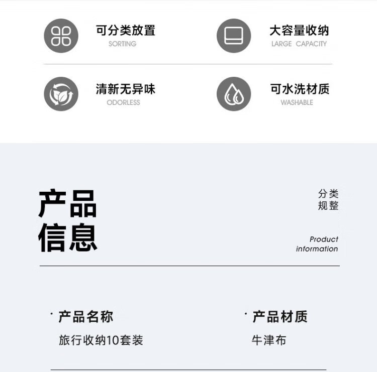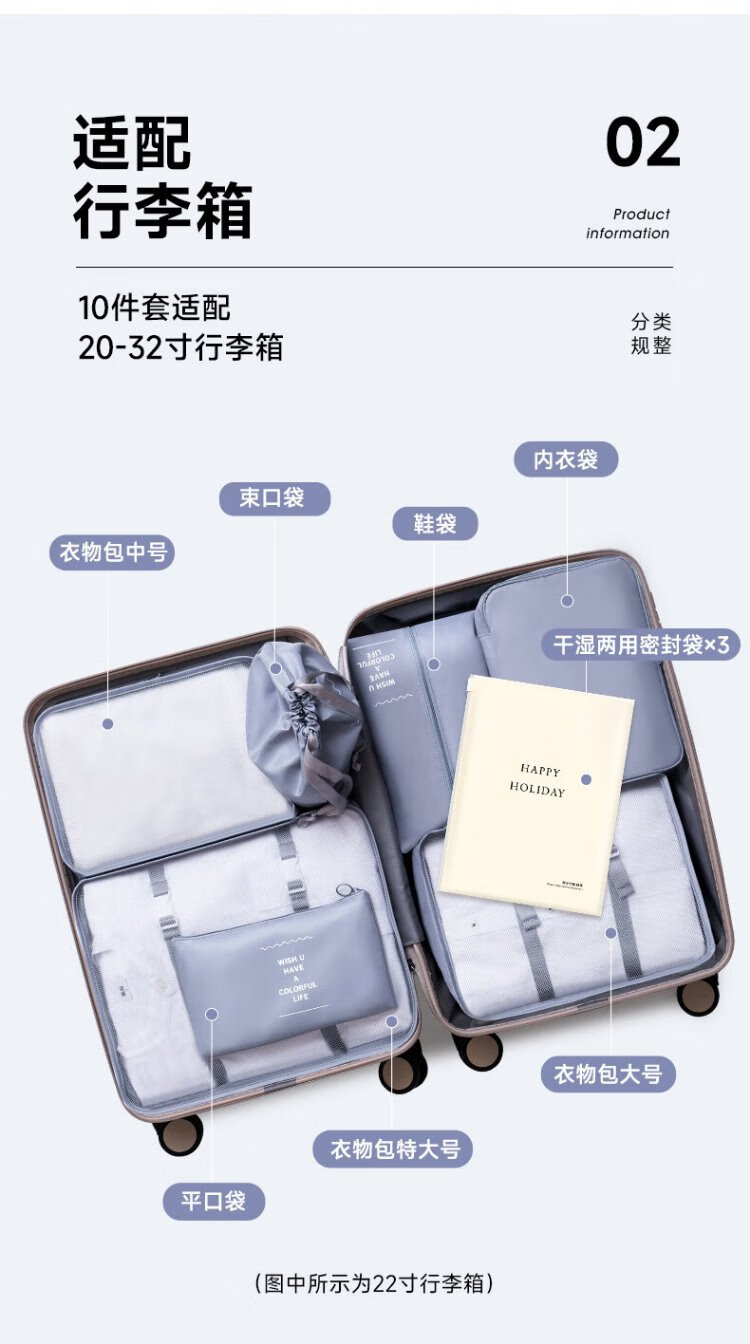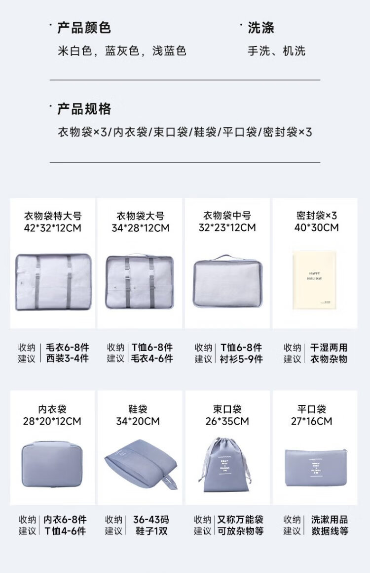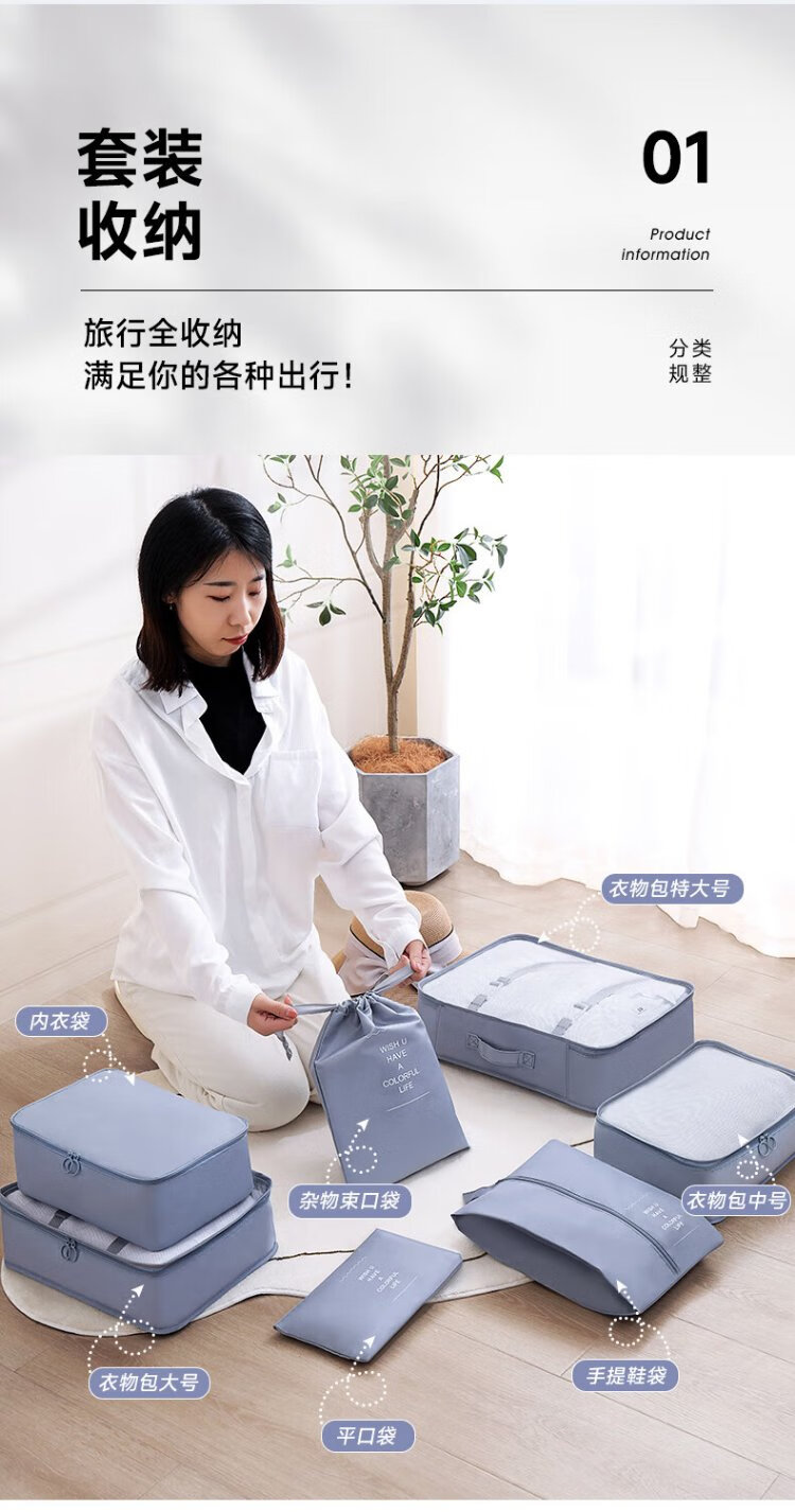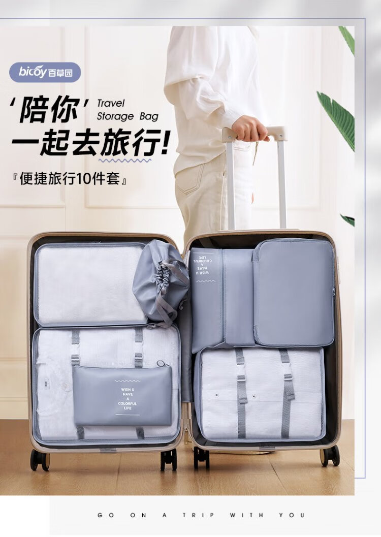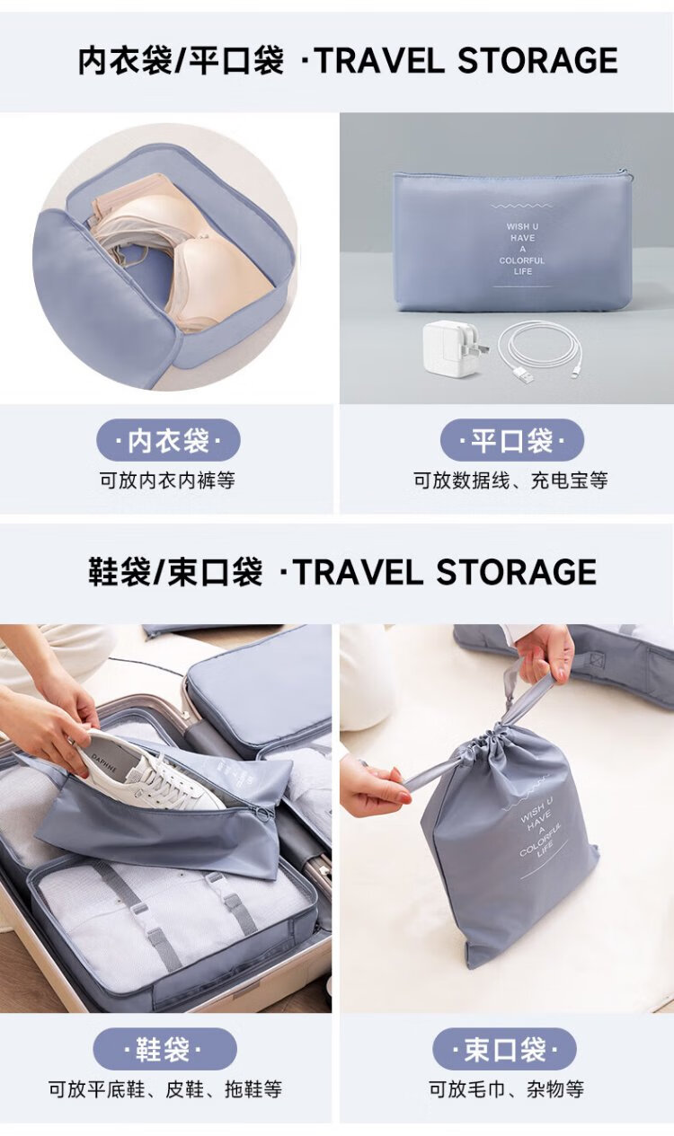 Baicaoyuan Travel Storage Bag Suitcase Storage Bag Clothes Distribution Bag Travel Essential Artifact Set Gray