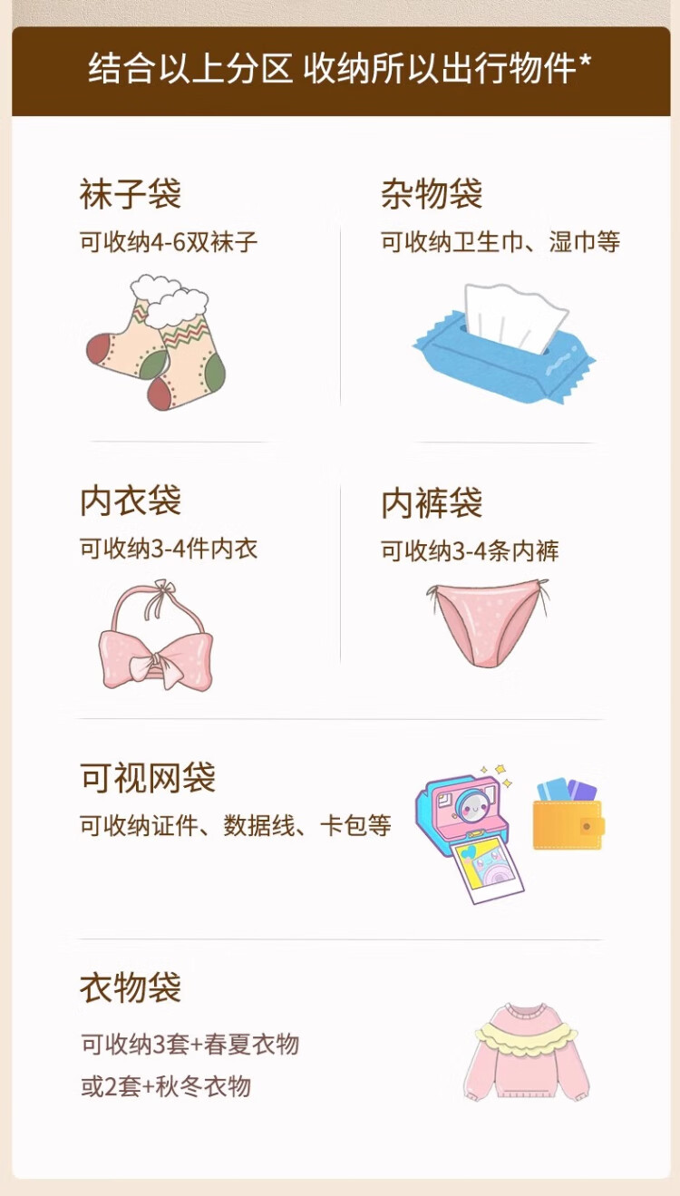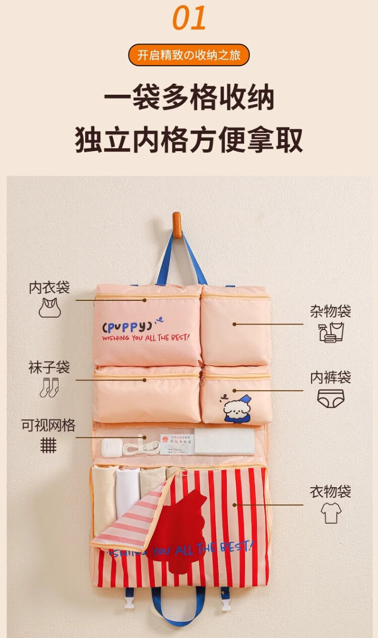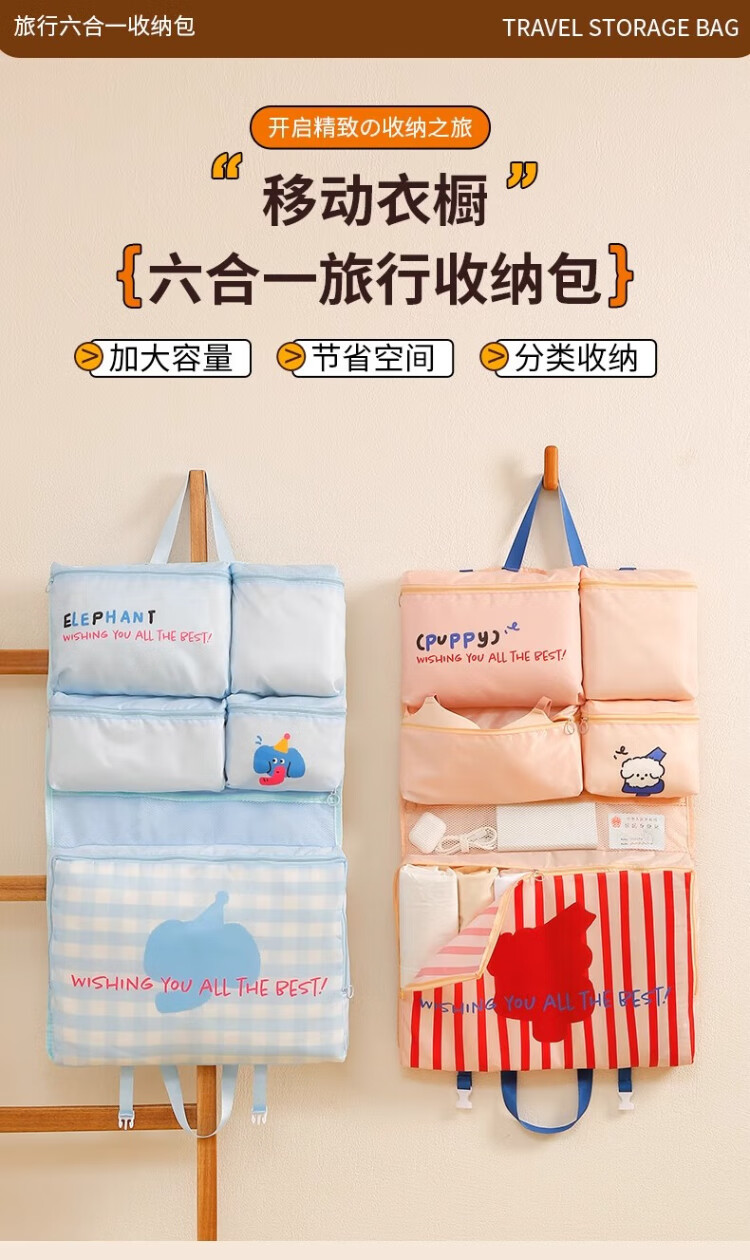 Fan Yejia's high-end six-in-one travel storage bag, travel storage sub-bag, hanging bag, underwear and socks sorting bag, portable