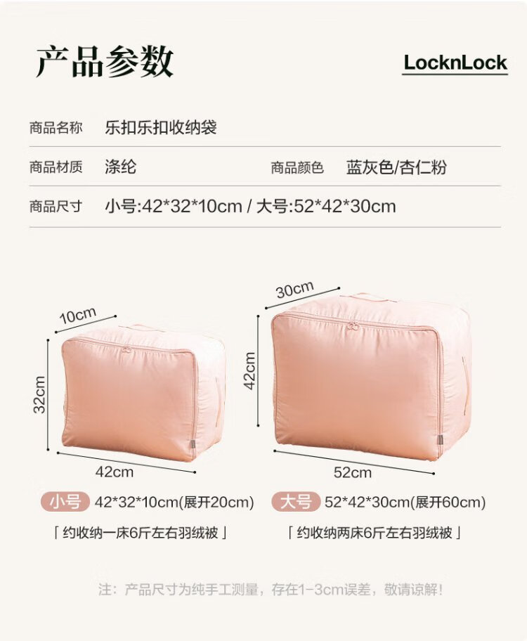 LOCK&LOCK travel down jacket storage bag suitcase travel organization bag clothes business trip clothing repackaging bag gray small size