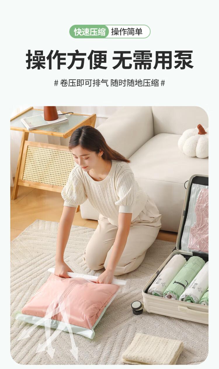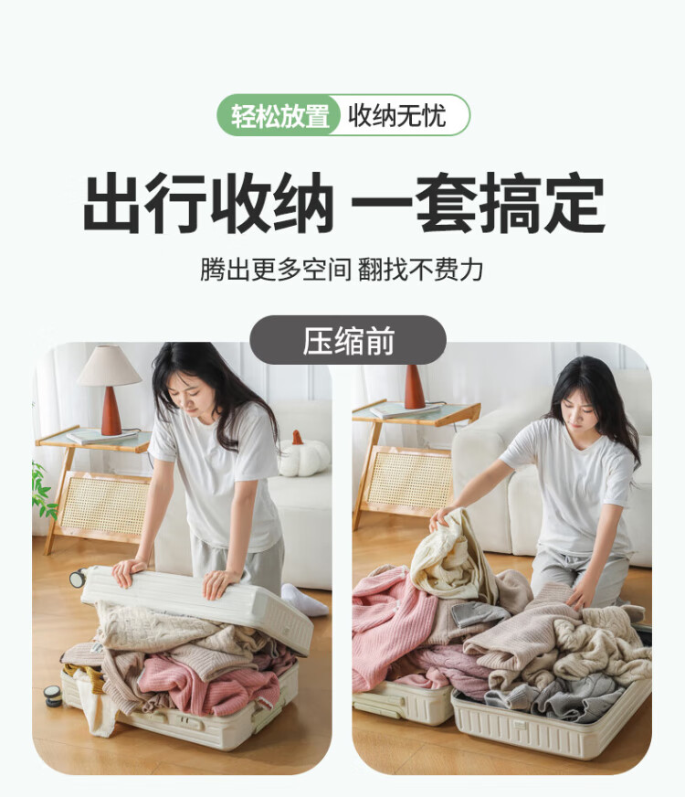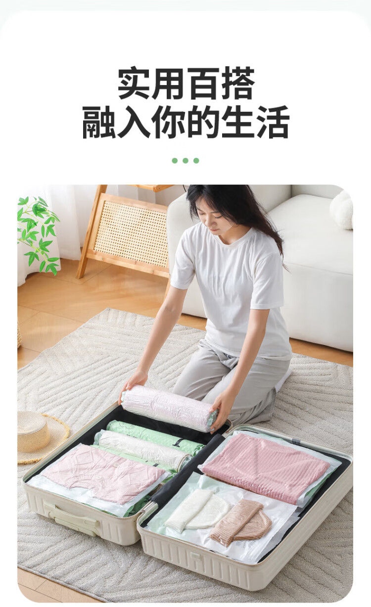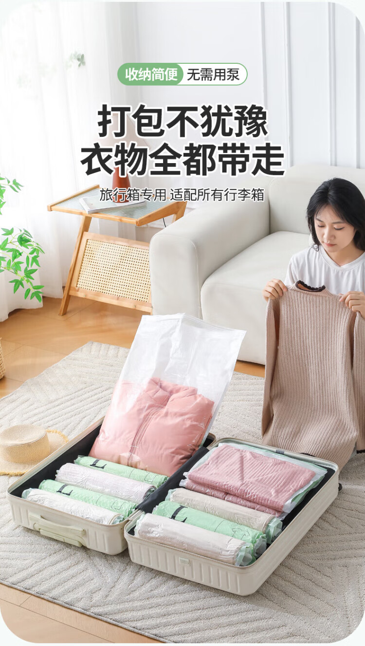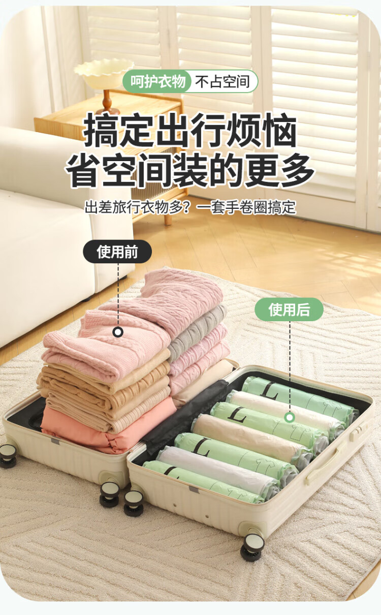 Baiyite hand-rolled vacuum compression bag travel storage bag bag air-free travel business trip luggage clothing organization 6-piece set