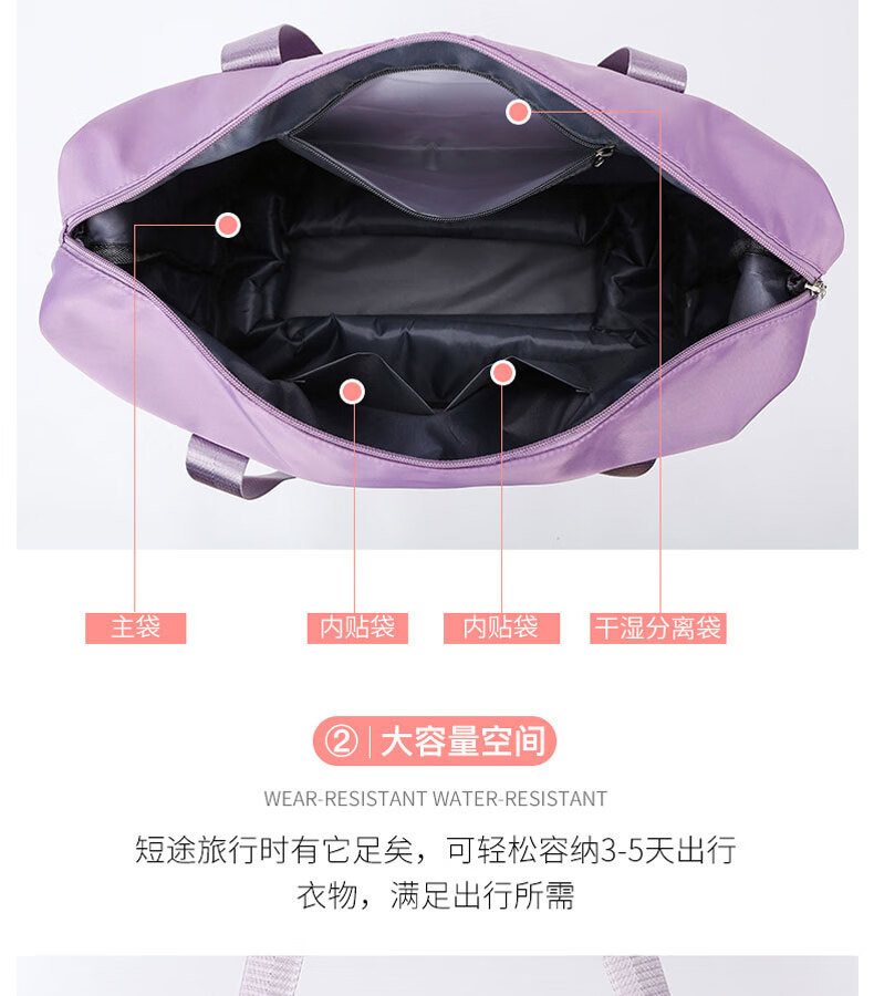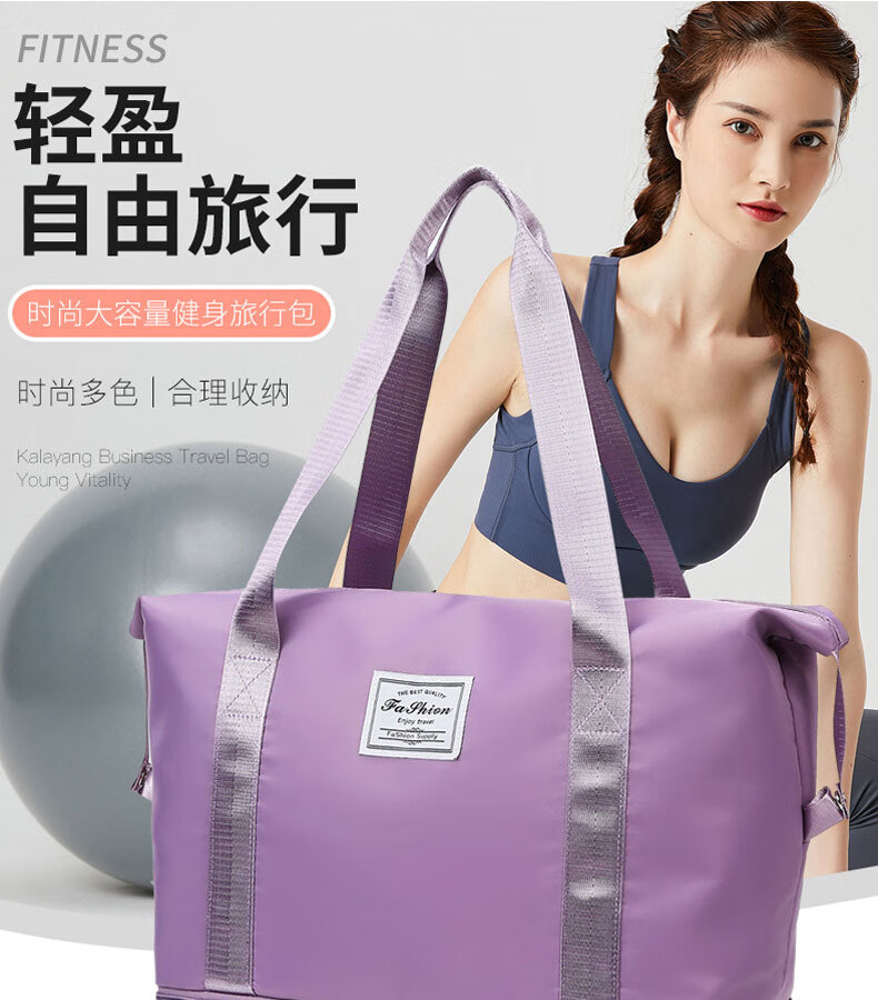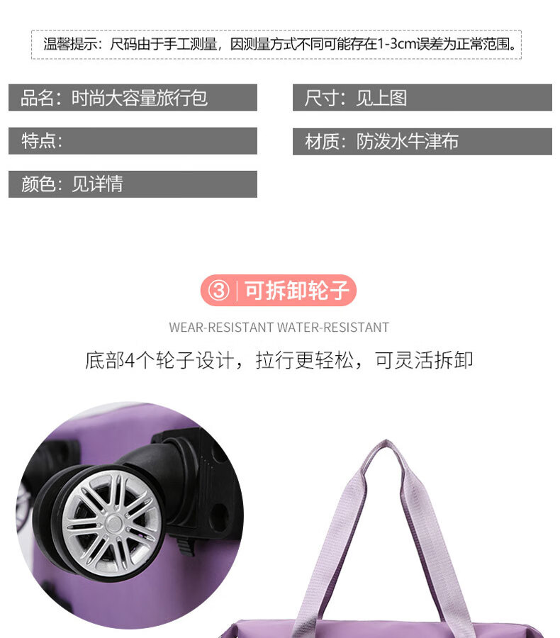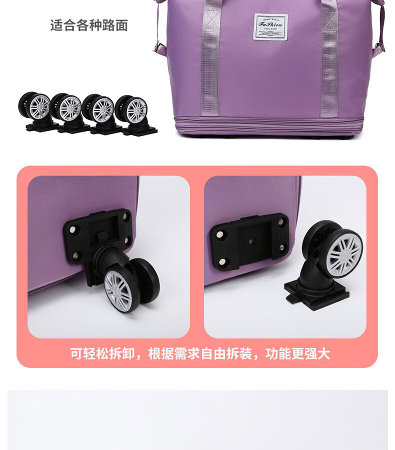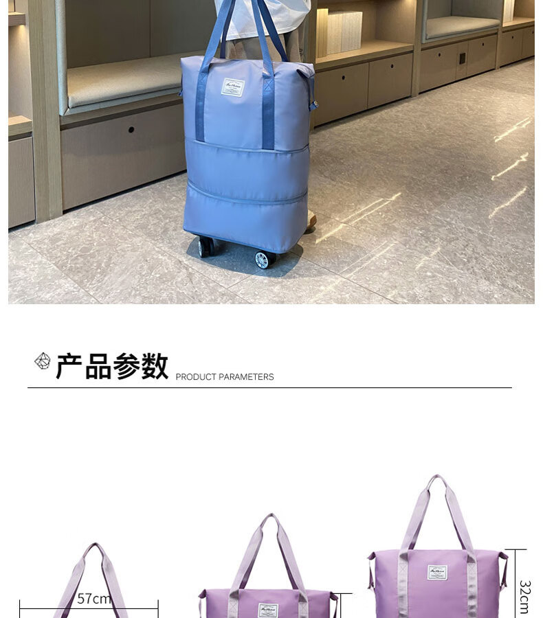 HUAJI Travel Storage Bag Foldable Hand-held Trolley Bag with Wheels Dry and Wet Separation Storage Bag Expandable Duffel Bag Black