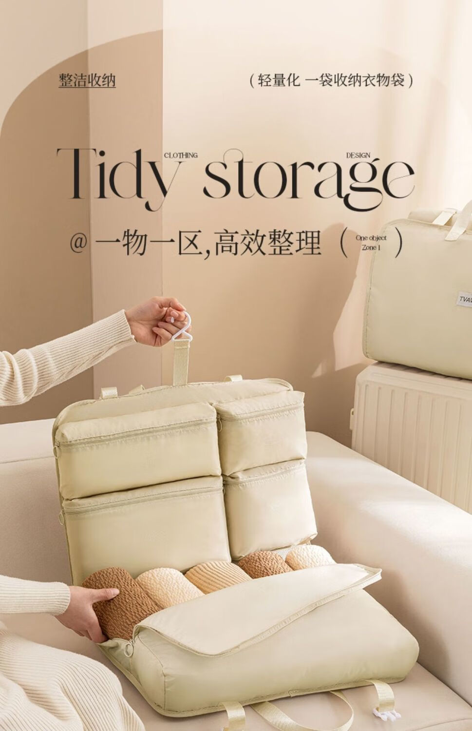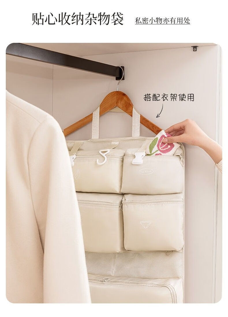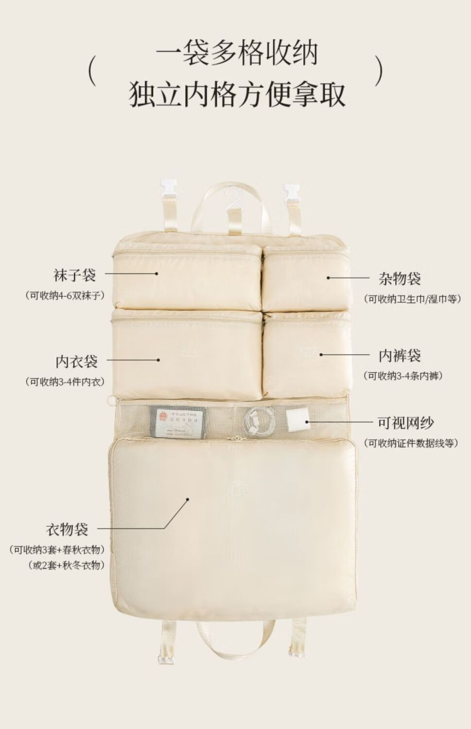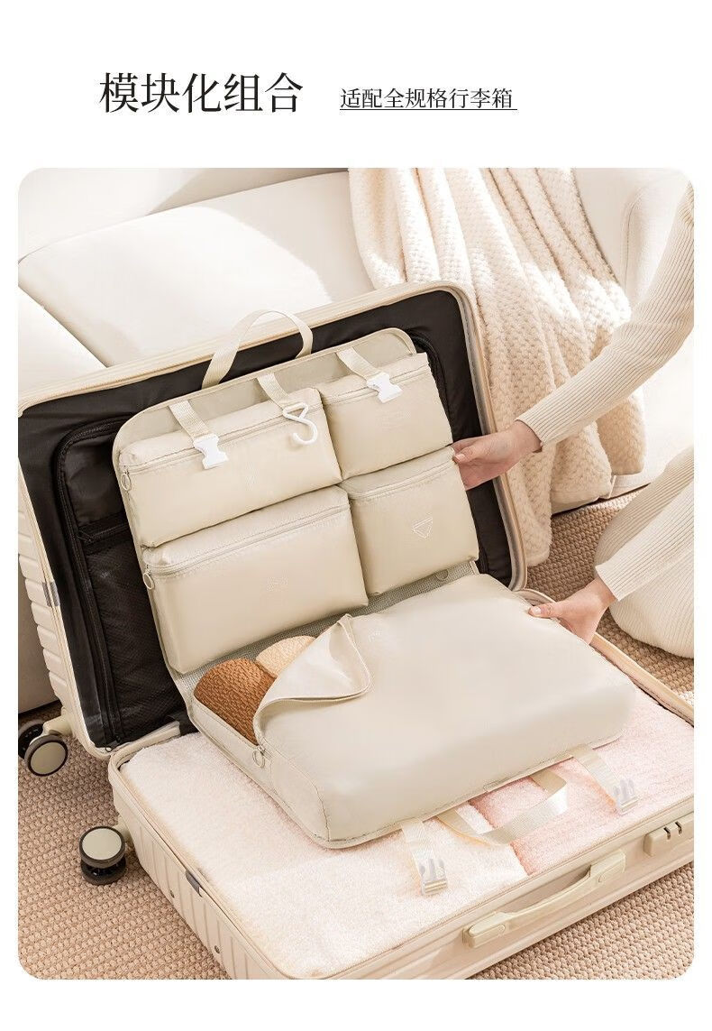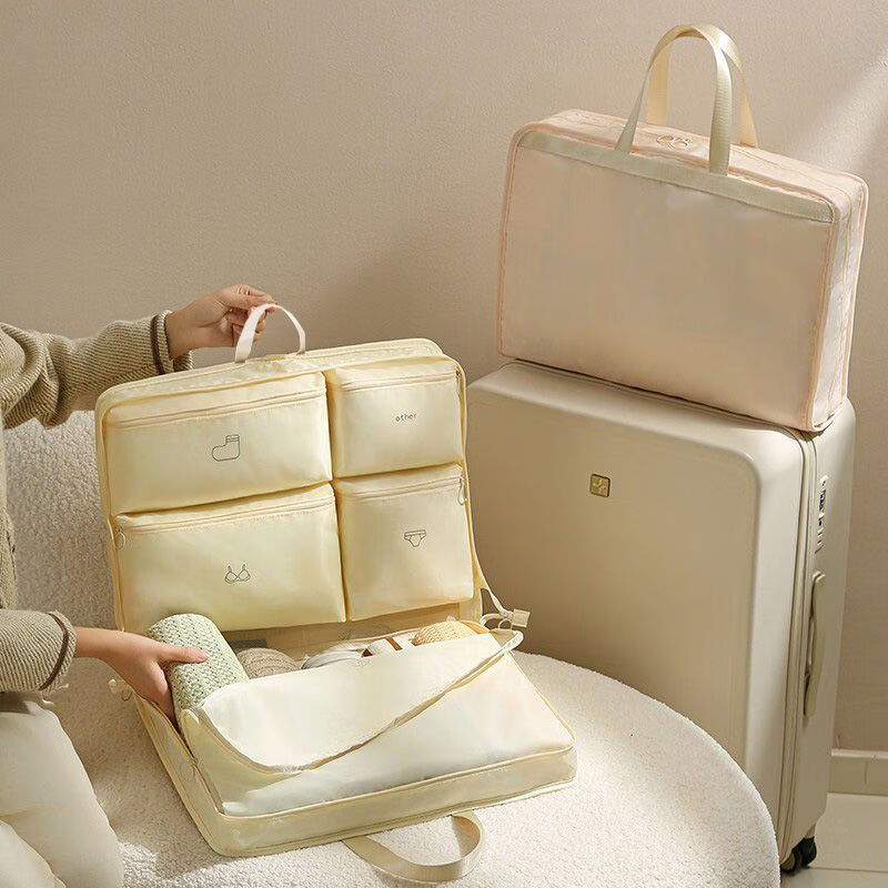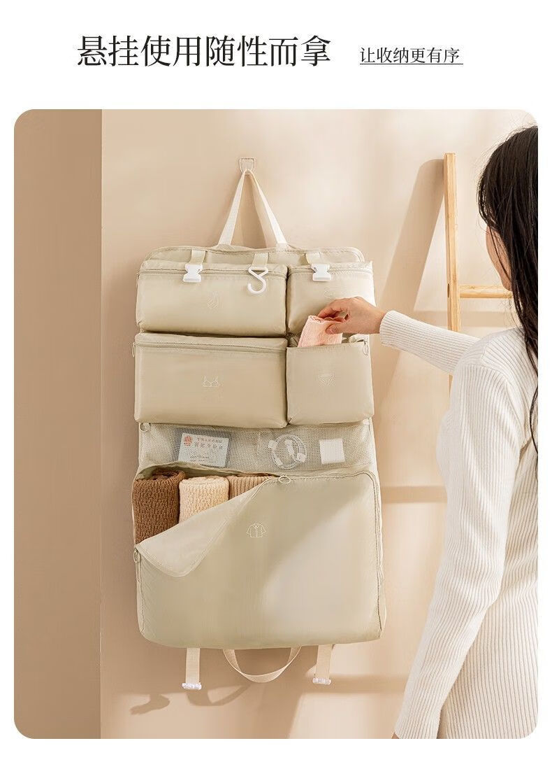 JD Logistics Travel Storage Bag 7-in-1 Underwear Storage Bag Close-fitting Clothes Packing Bag Luggage Clothing 2 Packs - Oatmeal - 7-in-1 Storage Bag + Seven Storage Areas
