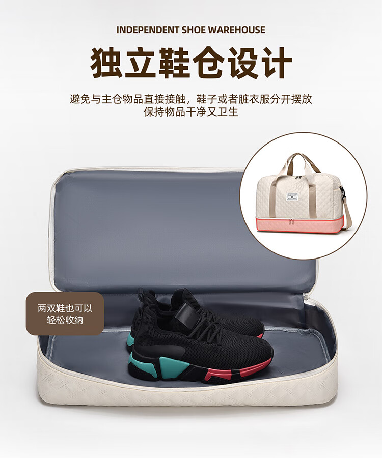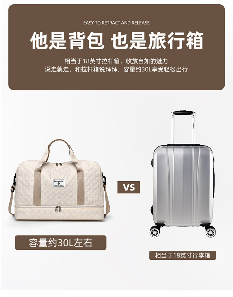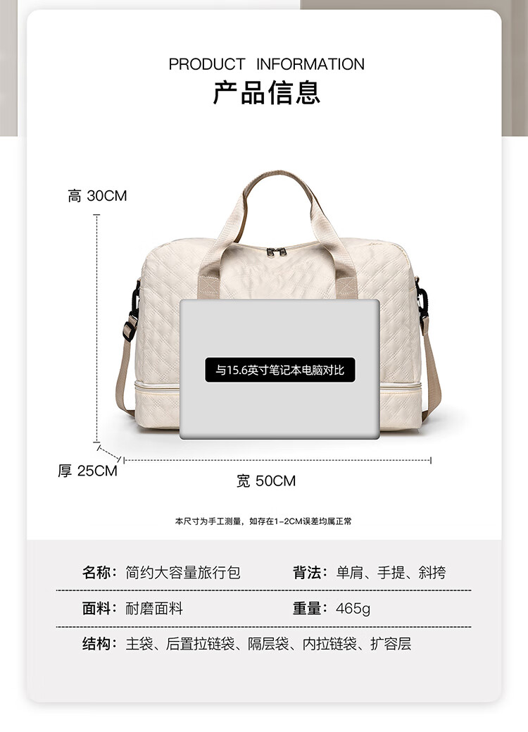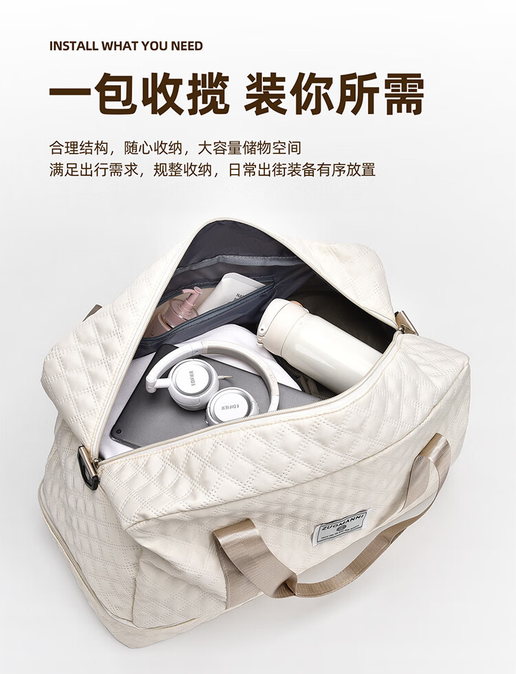 Travel bag for women, large capacity, lightweight and portable, maternity storage bag, short-distance swimming fitness bag, male student luggage bag, black