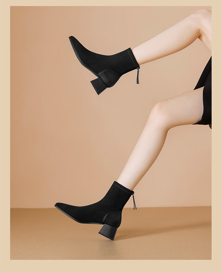 ZHR short boots women's winter plus velvet temperament pointed toe thick heel fashion boots women's versatile suede women's boots BL652A black 37