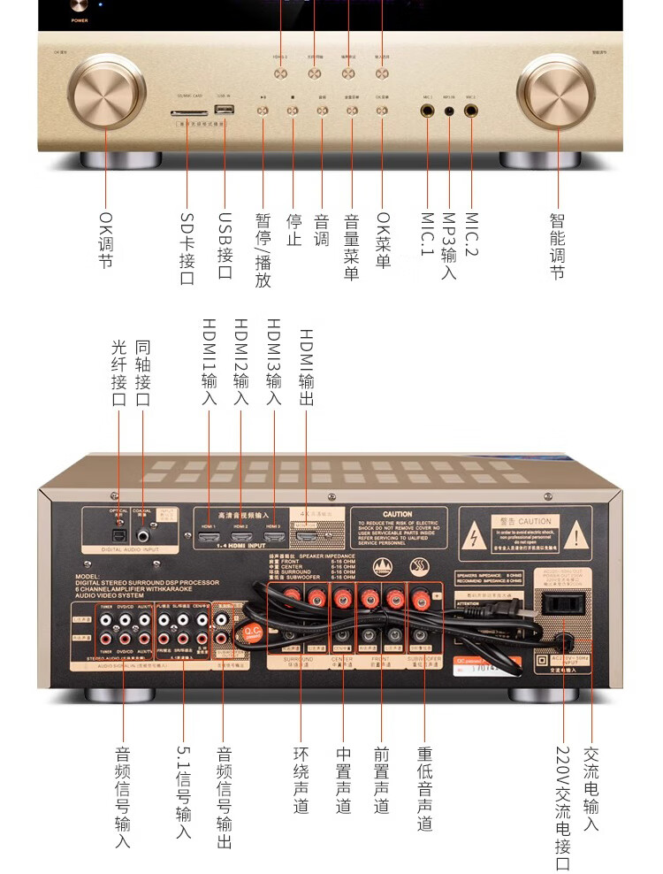 CHQIAO home theater audio set HIFI audio combination amplifier home ktv karaoke living room theater audio No. 6 5.1 audio