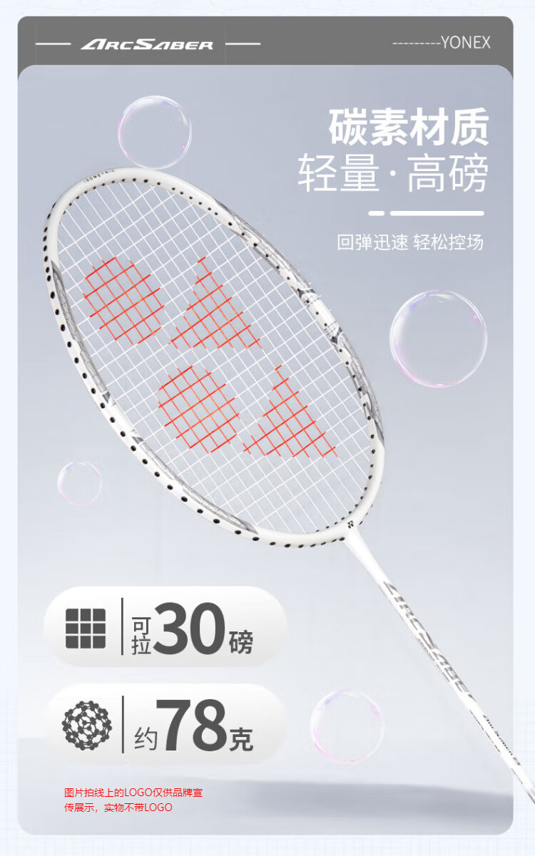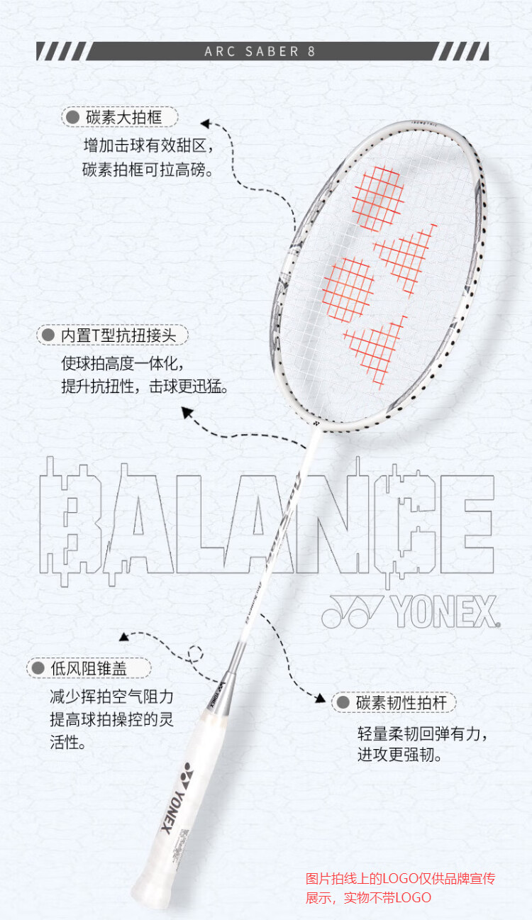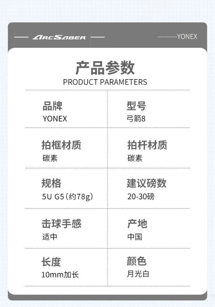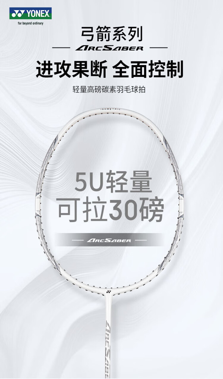 YONEX尤尼克斯羽毛球拍全碳素精准控球高磅弓箭ARC8白色已穿26磅附手胶