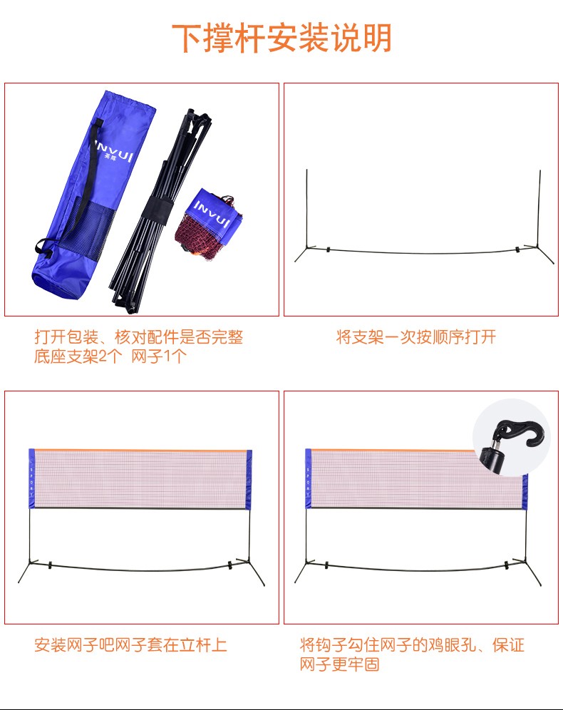 Yinghui (INVUI) standard badminton net frame portable removable folding student indoor outdoor home simple field blocking column standard doubles 6.1 meters