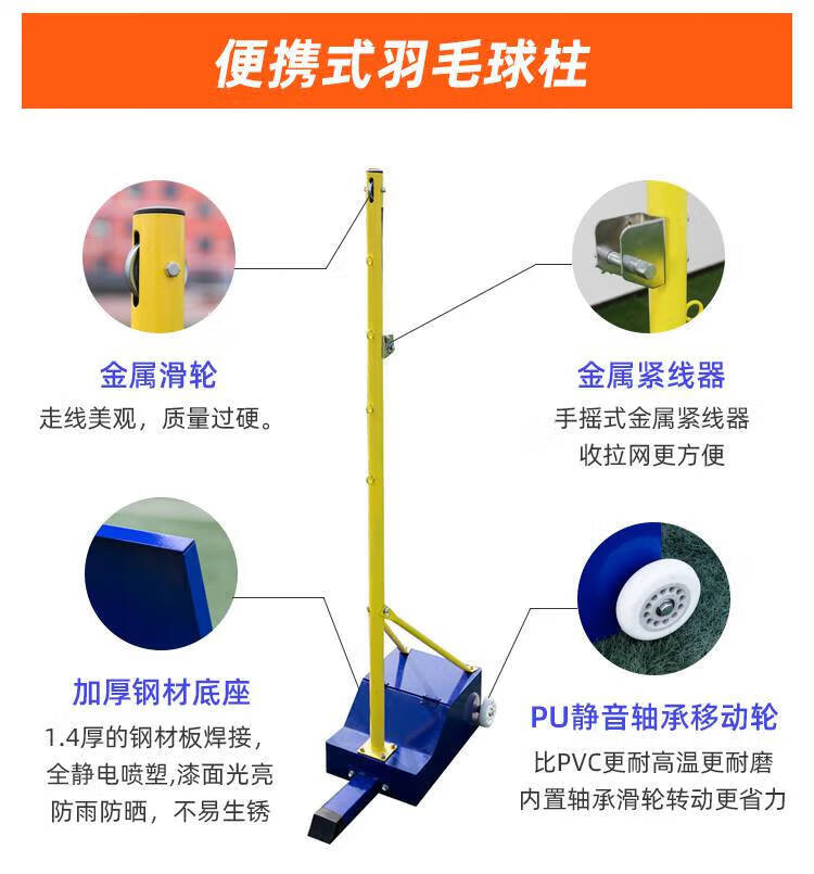 Xu Qixing tennis post standard badminton rack grid standard portable outdoor net stand mobile post air volleyball ground fixed badminton post + badminton net