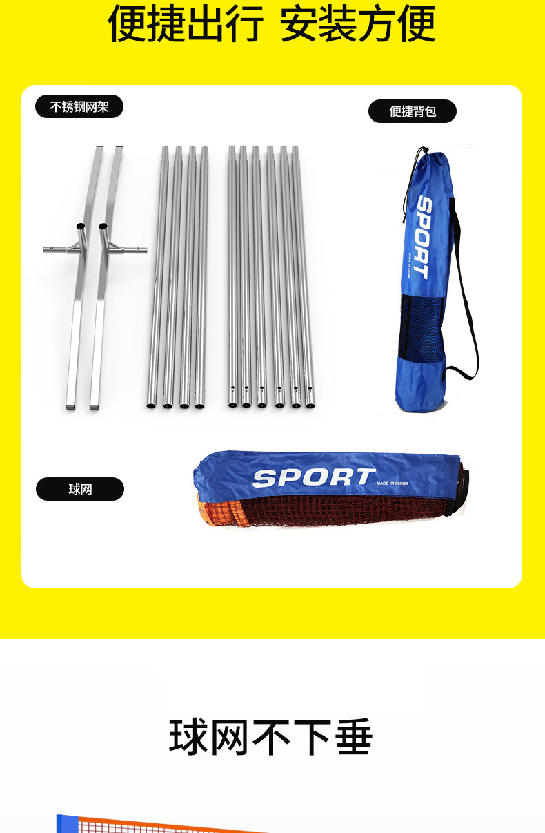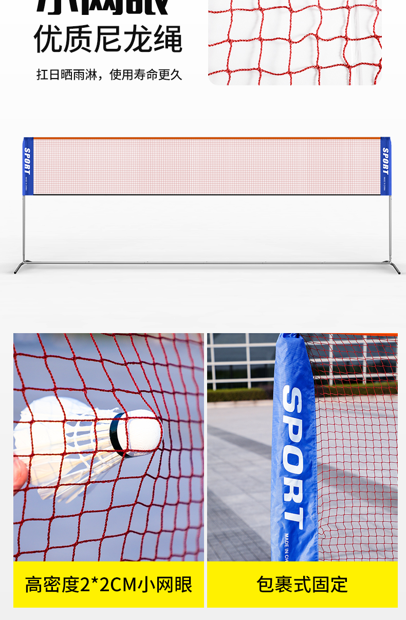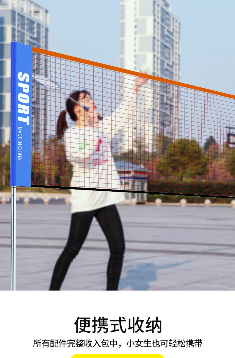 Jingpufei Badminton Net Frame Portable Blocking Stainless Steel Badminton Net Frame Portable Outdoor Standard Net Outdoor 1m 6.1m Doubles Model Bold