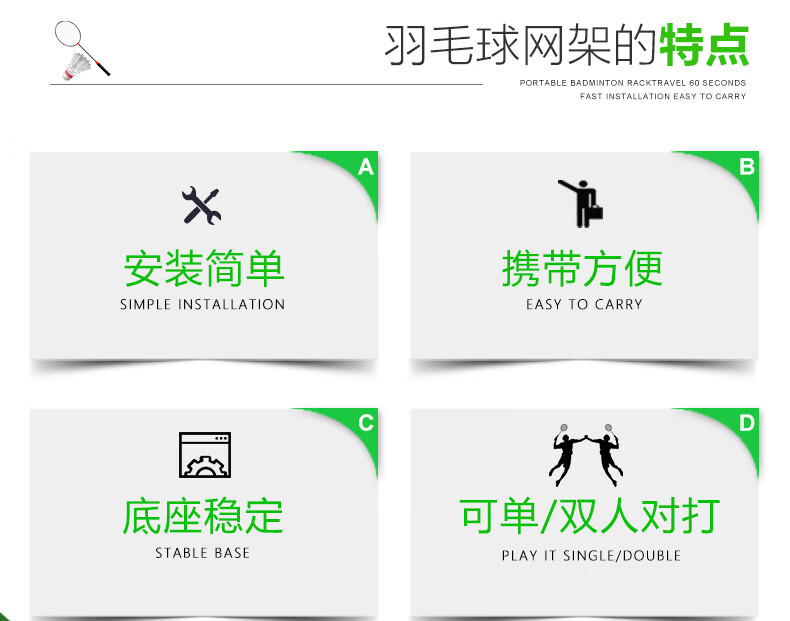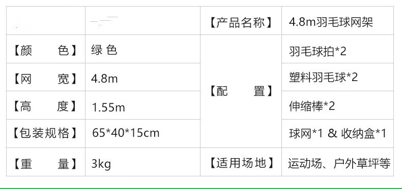 Yingming Double Standard Badminton Net Frame Simple Portable Badminton Net Mobile Net 4.8m Green No Storage Bag