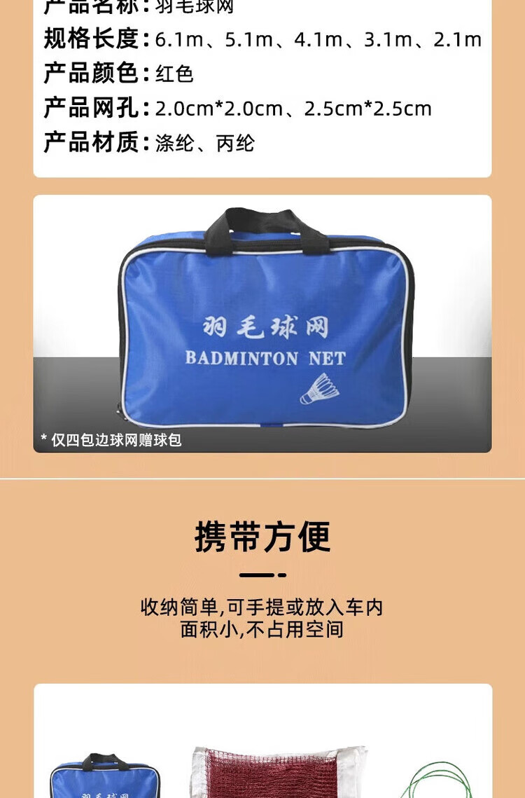 糜鸿(MIEHONE)羽毛球网架+网 便携式 可升降羽毛球网标准网室外简易便携式折叠 立减中【6.1米四包边钢丝绳】送
