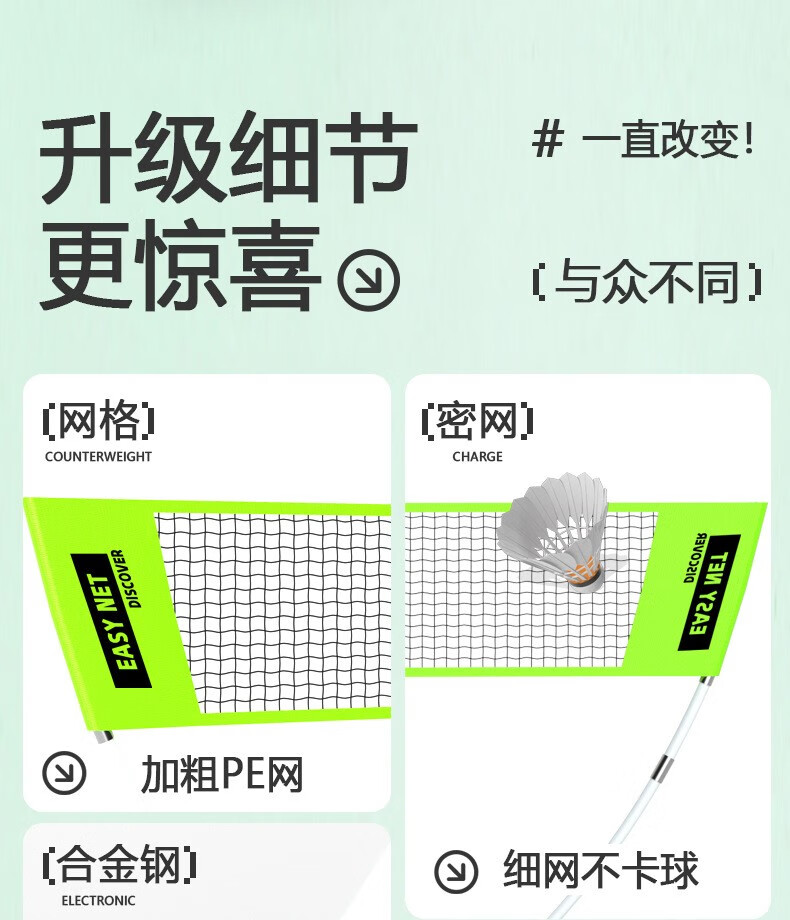 Cypler Badminton Net Frame Portable Simple Folding Standard Net Indoor and Outdoor Mobile Net Frame Competition Outdoor Blocking Fitness Green-Height Adjustable Badminton Net
