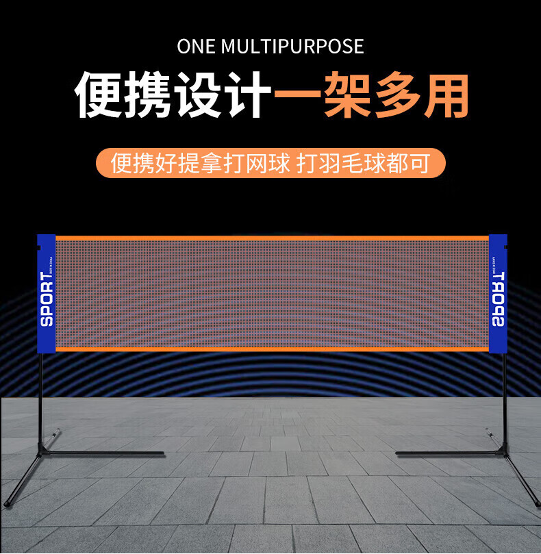 羽毛球网架便携式家庭家用室内户外移动拦网支架子羽毛网架可 4.1 4.1m 家庭款升级款[方管磨砂]
