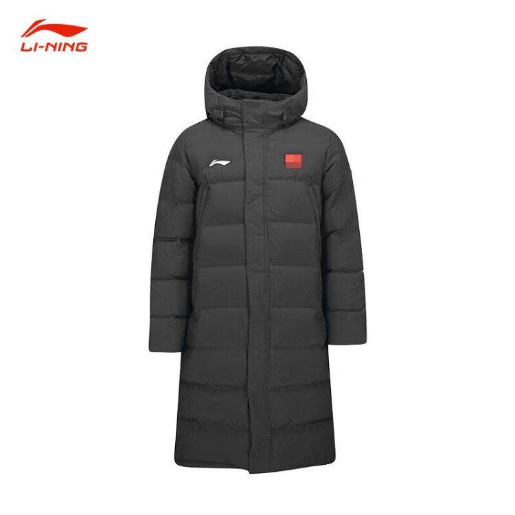 李宁(LI-NING)羽毛球服长款羽绒服男女同款白鸭绒保暖舒适耐寒外套 黑色 M