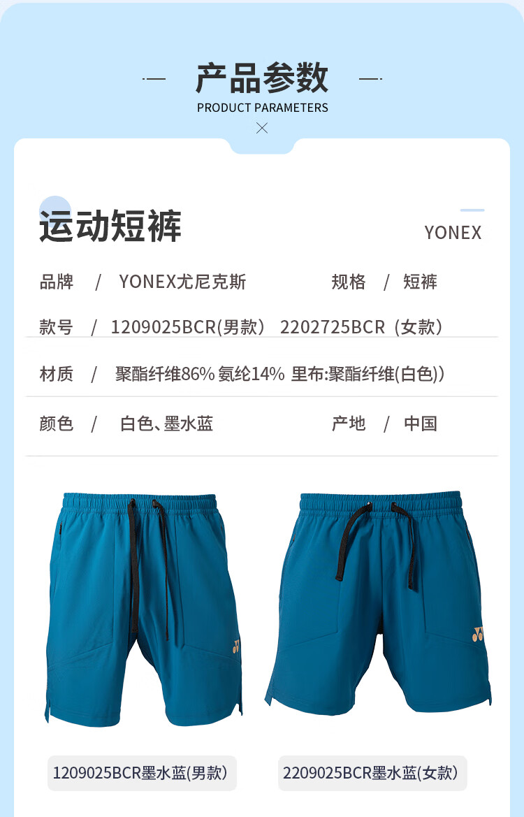 YONEX Yonex Combinaison de badminton Compétition Entraînement Course Fitness Short de sport 1209025BCR Bleu encre L