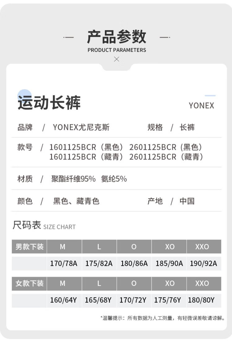 YONEX尤尼克斯羽毛球服比赛训练运动跑步新款长裤男1601125BCR黑色L