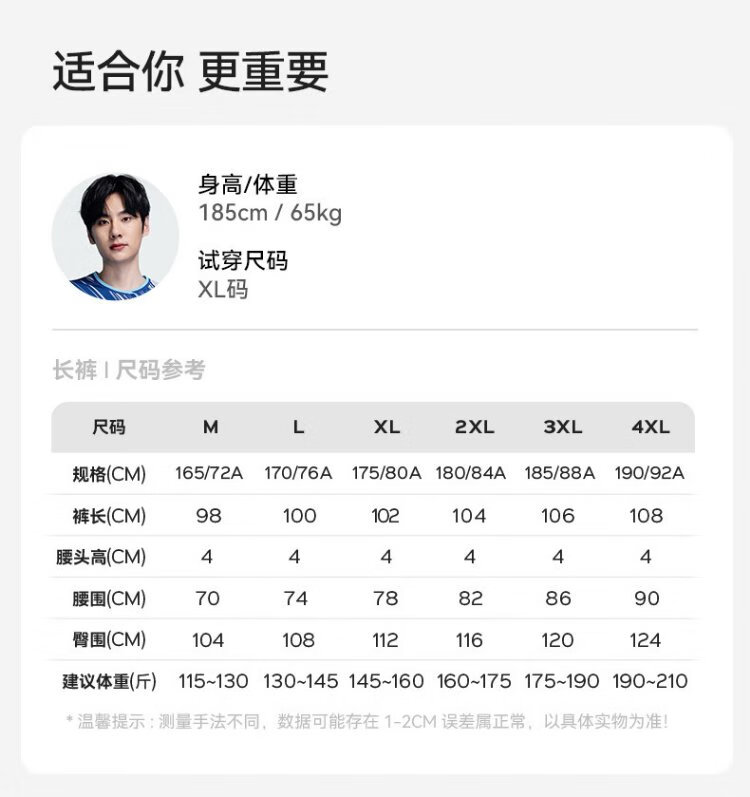 China (cm) 165 / 88-90 170 / 96-98 175 / 108-110 180 / 118-122 185 / 126-130