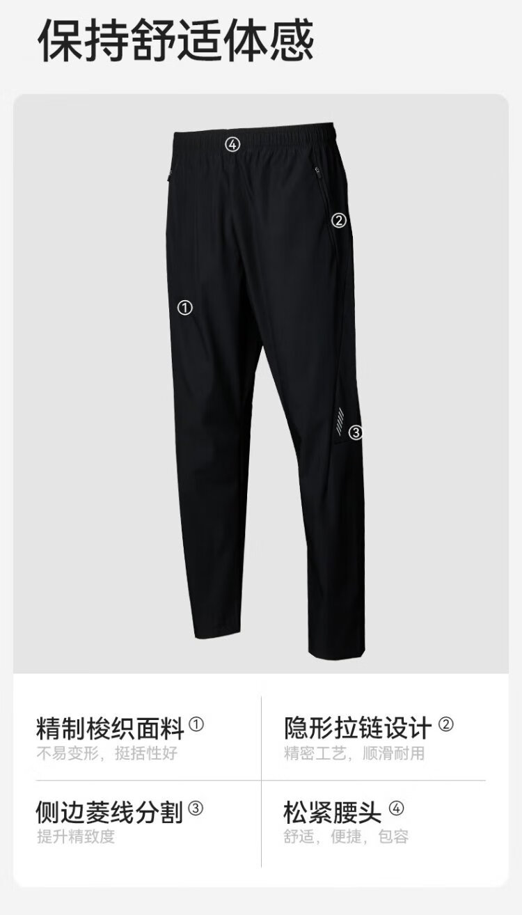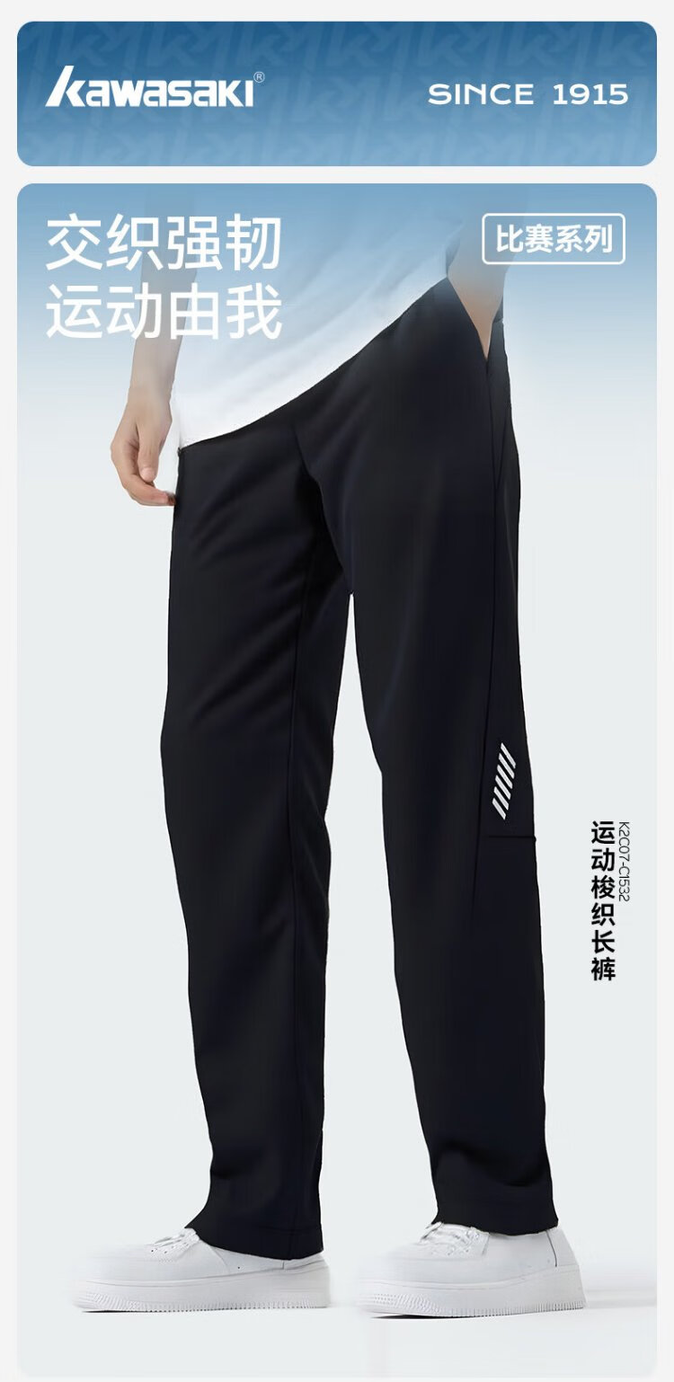 kawasaki川崎羽毛球服男款梭织长裤训练运动速干休闲裤C1532 黑色XL