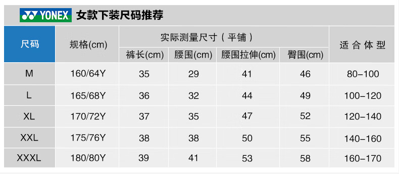 China (cm) 160-165/84-86 165-170 / 88-90 167-172 / 92-96 168-173 / 98-102 170-176 / 106-110