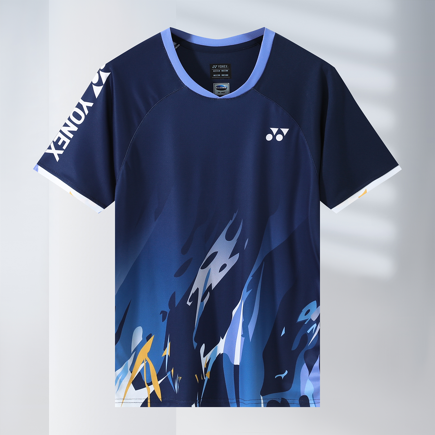 新款羽毛球服套装男款运动短袖透气速干衣国羽大赛服球衣团购定制 3125藏青-套装-男款 2XL