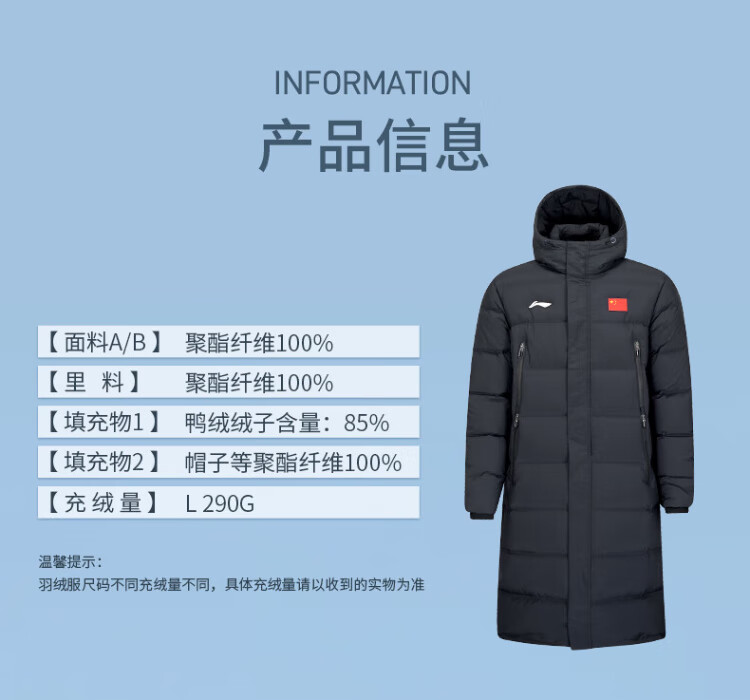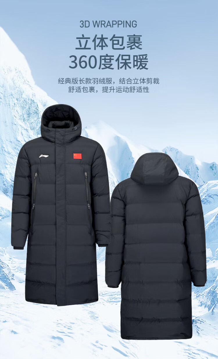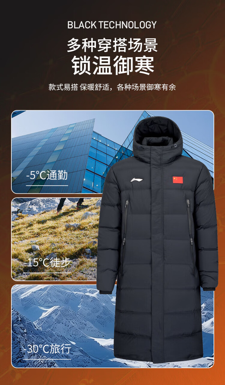 Li Ning long down jacket with national flag badminton series men and women same style winter duck down sports top 25 new products black L (175)