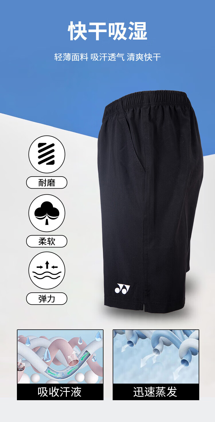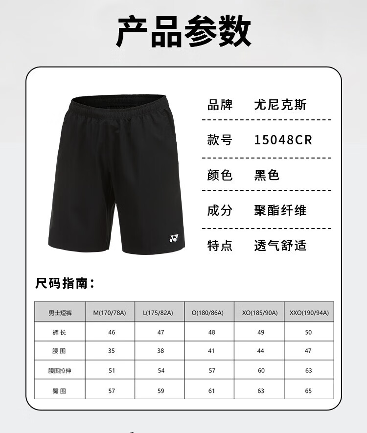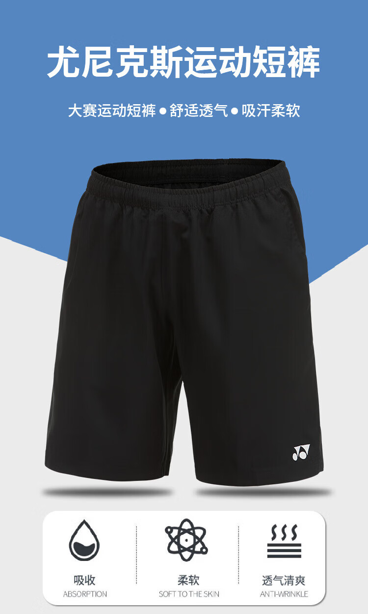 YONEX尤尼克斯羽毛球网球运动服男短裤yy速干15048CR-007黑色L