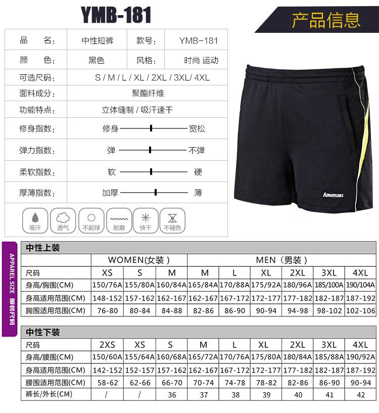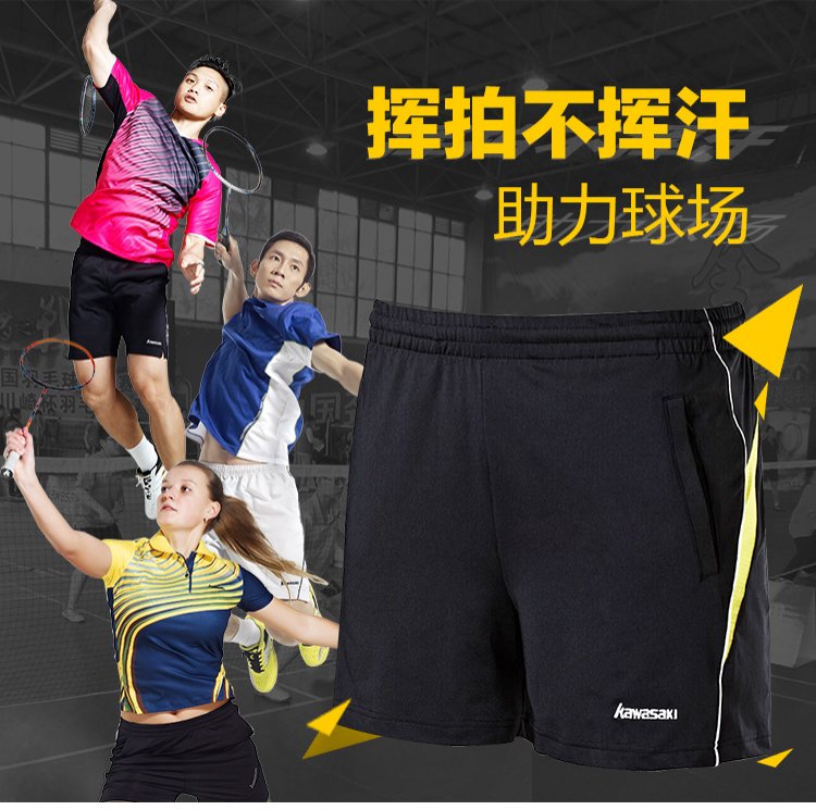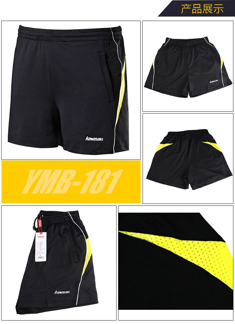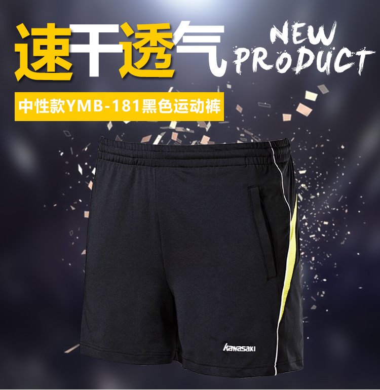 川崎KAWASAKI羽毛球服 男女中性款休闲运动短裤子运动裤透气排汗黑色YMB-181 XL