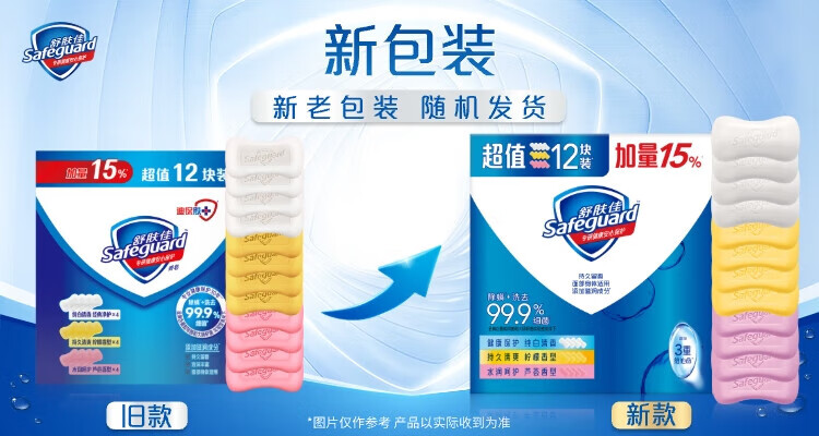 舒肤佳香皂12块皂(纯白4+柠檬4+芦荟4)肥皂 99.9%除菌 新旧包装随机
