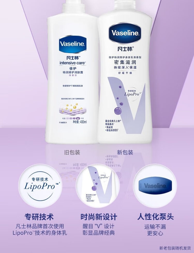 凡士林身体乳大白罐400ml密集修护滋润 补水保湿持久留香 男女士通用