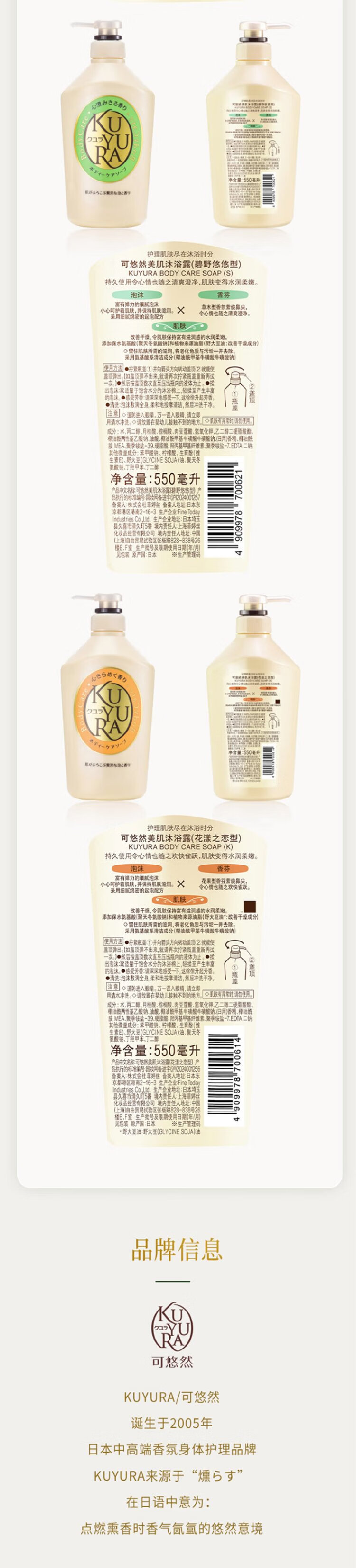 可悠然【丁禹兮同款】沐浴露大黄瓶550ml 美肌香氛滋润保湿清爽持久留香