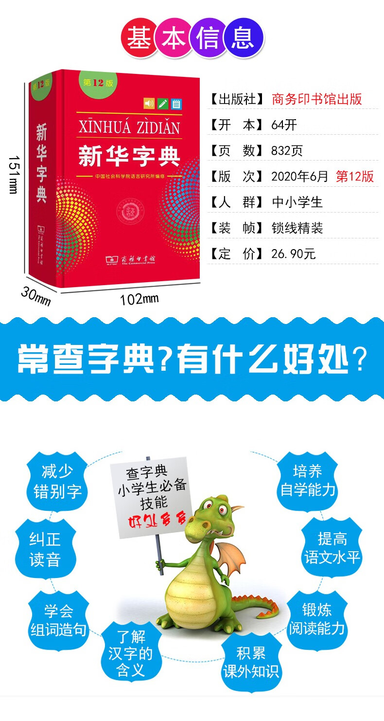 新华字典第12版 商务印书馆正版 2025新华书店同款全国统一版本 小学生初中生工具书籍 精装64开 人教版通用中考指定版 新华字典12版【单色本】