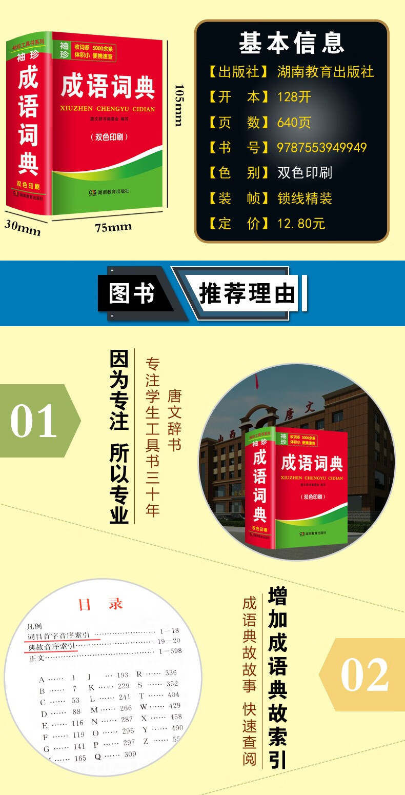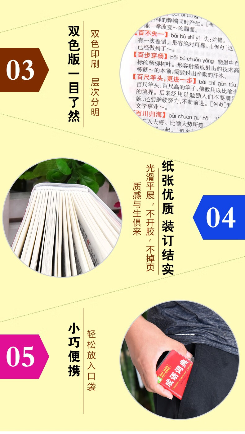 Idiom Dictionary Pocket Edition Pocket Book Portable Hardcover 128-page two-color printing Contains more than 5,000 idioms Pocket Idiom Dictionary for elementary school students, junior high schools